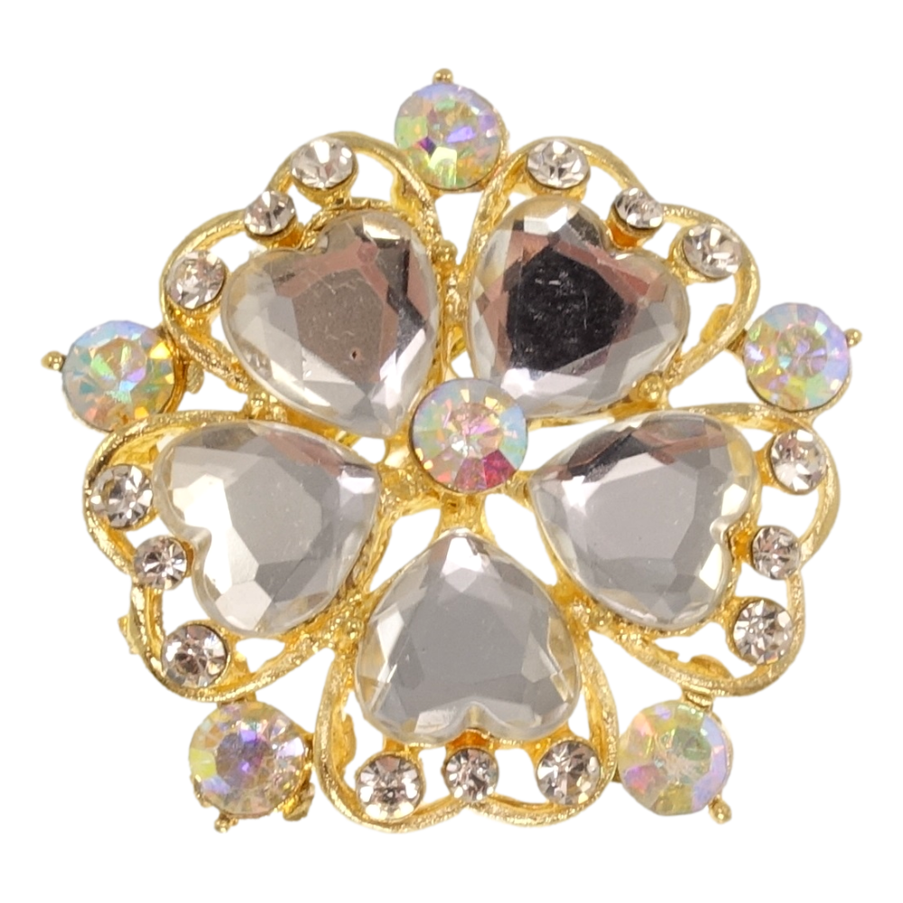 Брошь Цветок со стразами и сердечками
