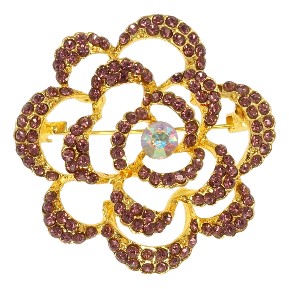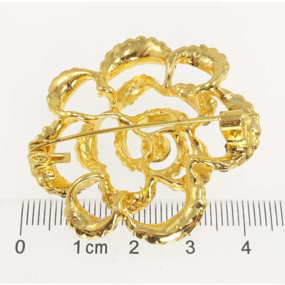Брошь Цветок с бордовыми стразами