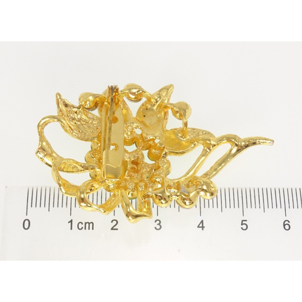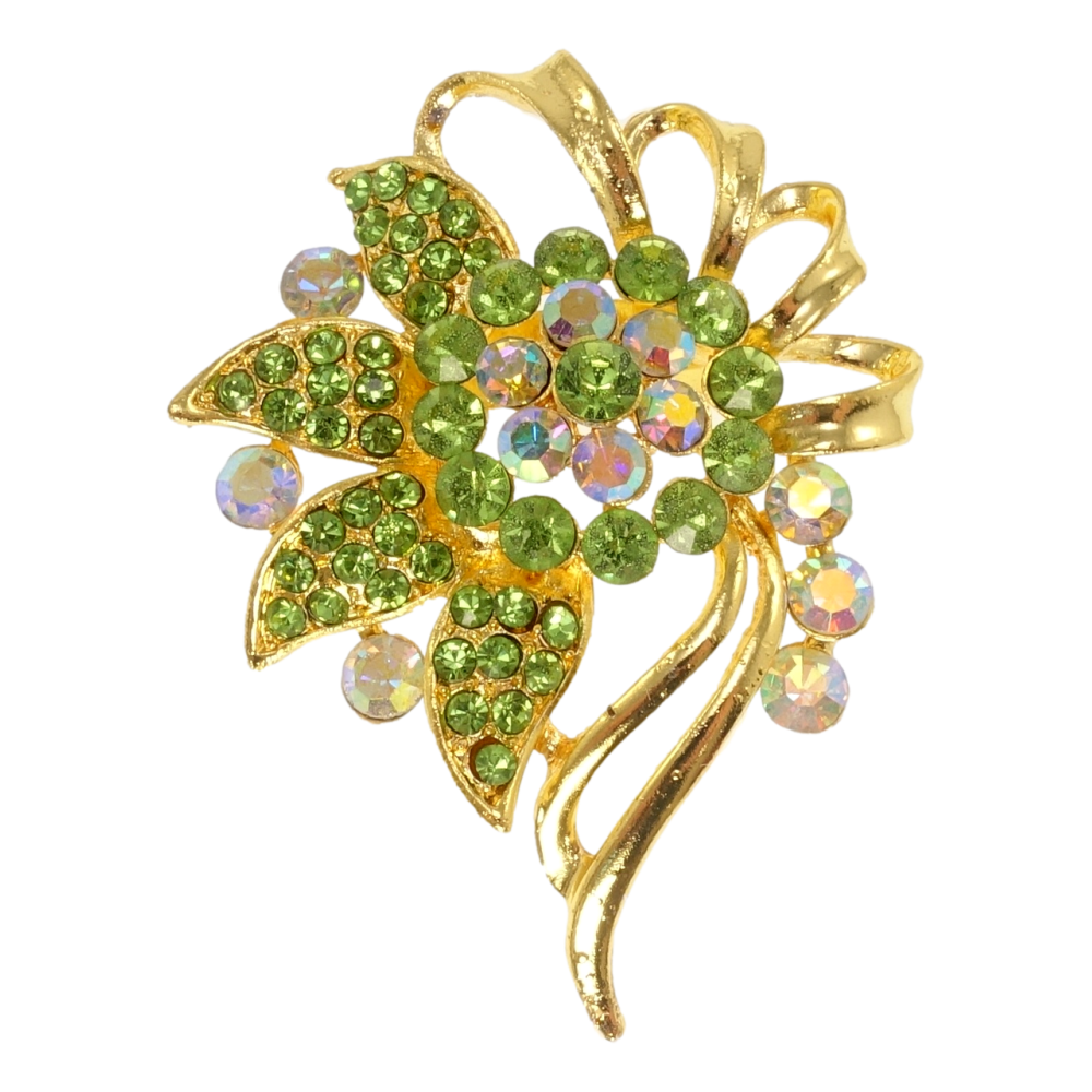 Брошь Цветок с зелёными стразами