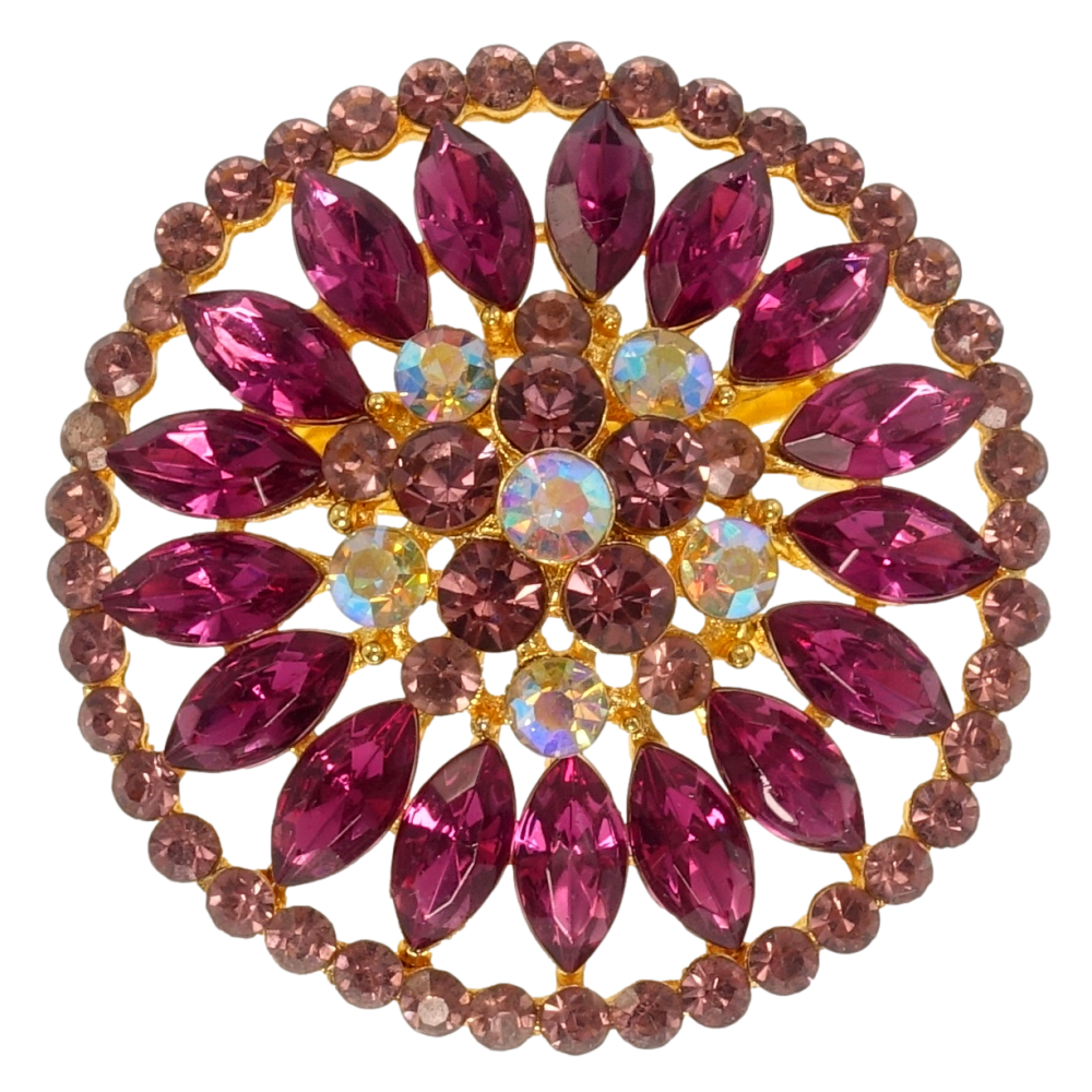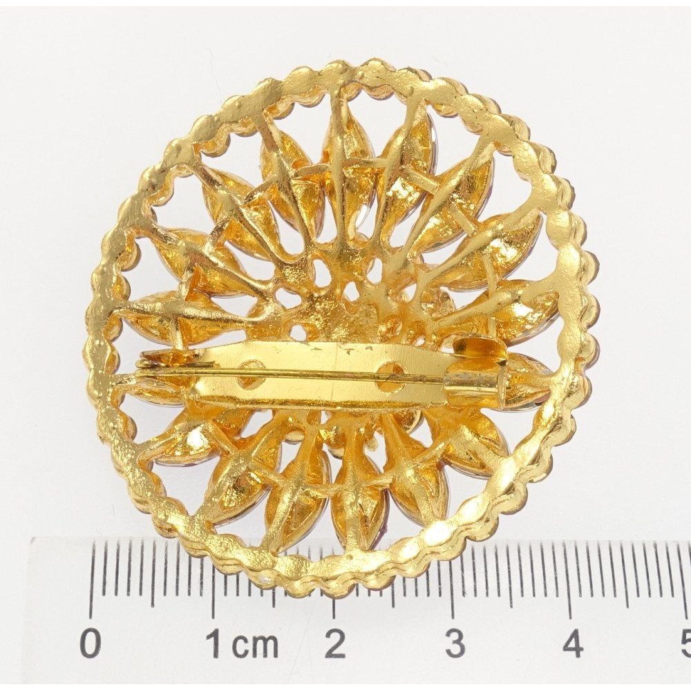 Брошь Цветок с бордовыми стразами