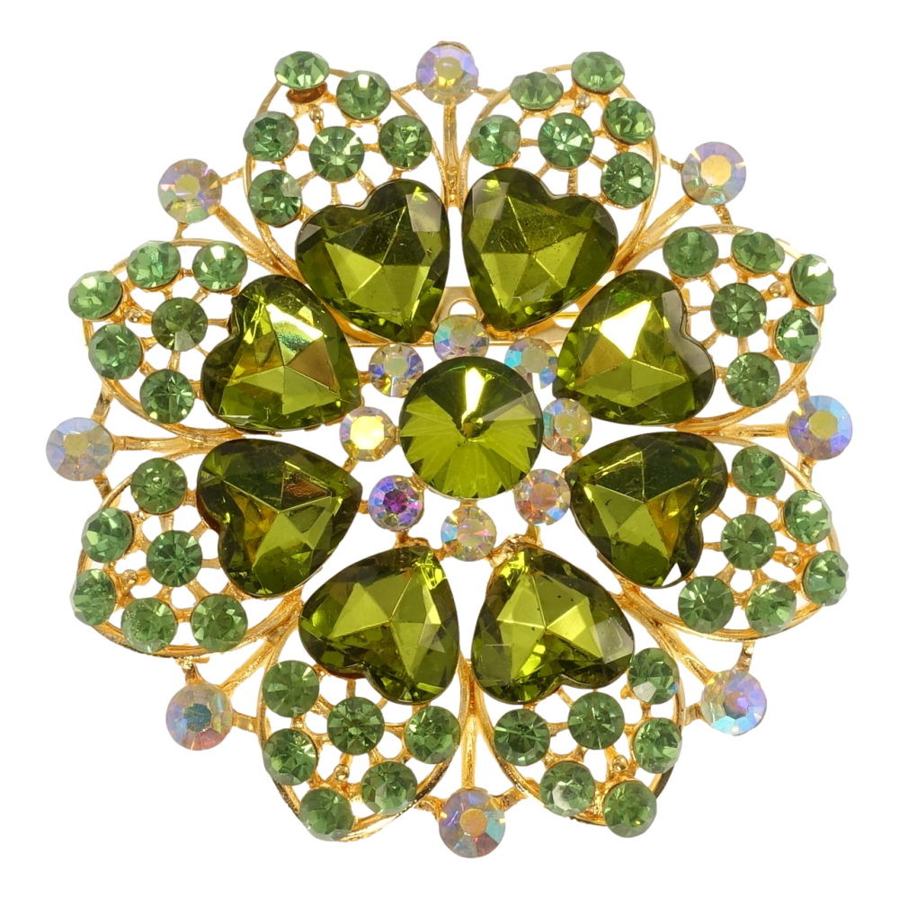Брошь Снежинка с зелёными сердечками