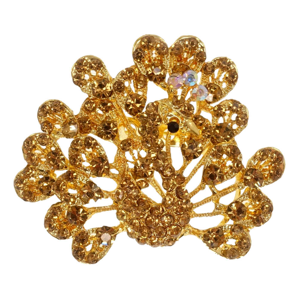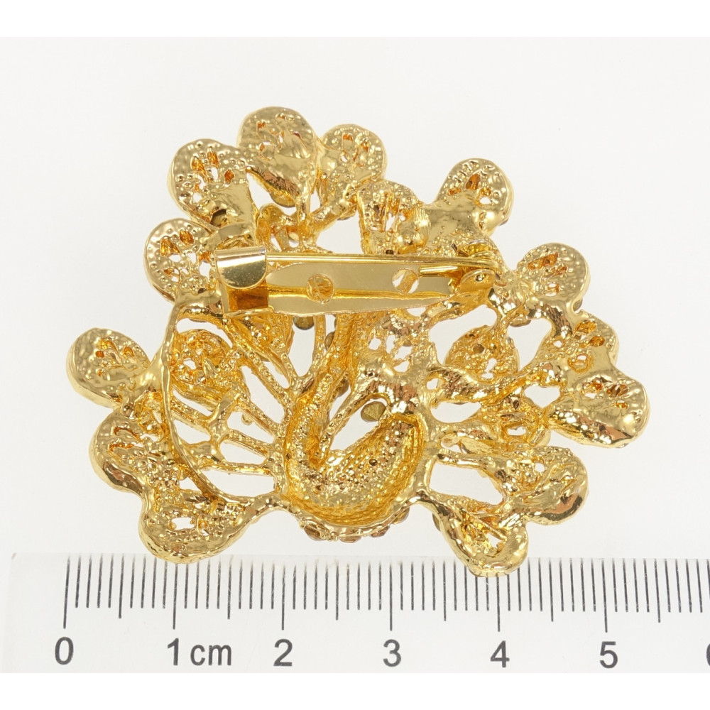 Брошь Павлин с коричневыми стразами