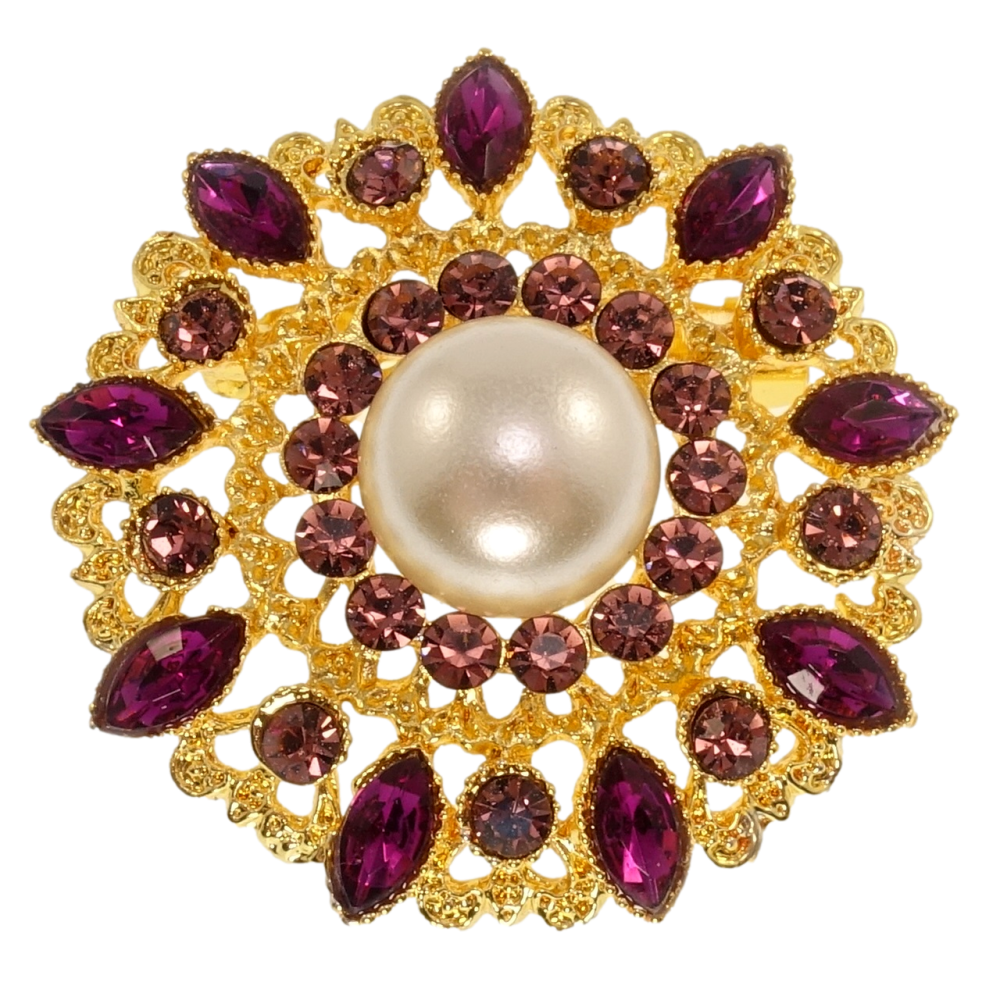 Брошь Цветок с жемчугом и фиолетовыми стразами