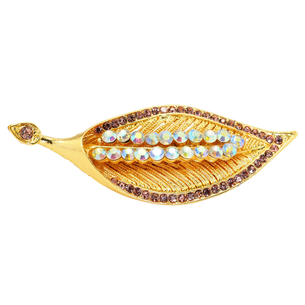 Брошь Листик с розовыми стразами