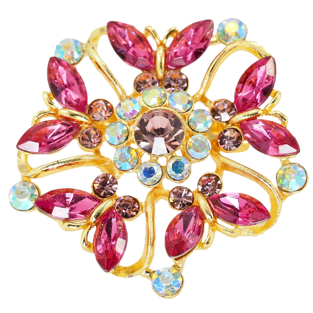 Брошь Вальс бабочек из розовых страз