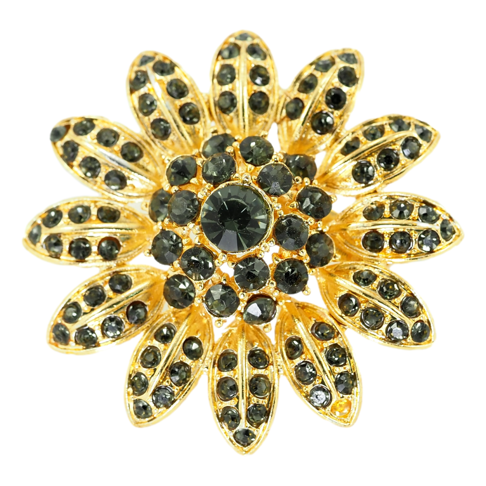 Брошь Цветок с черными стразами