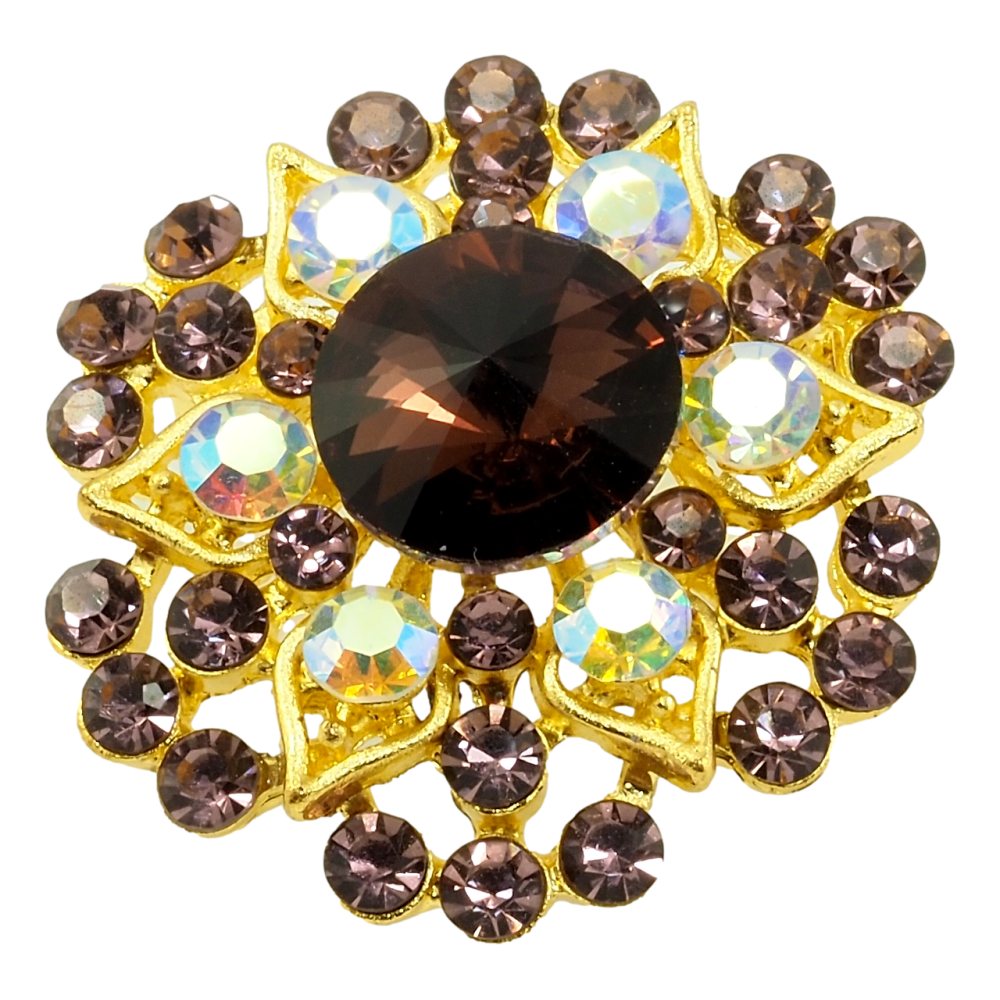 Брошь Цветочек с бордовыми стразами