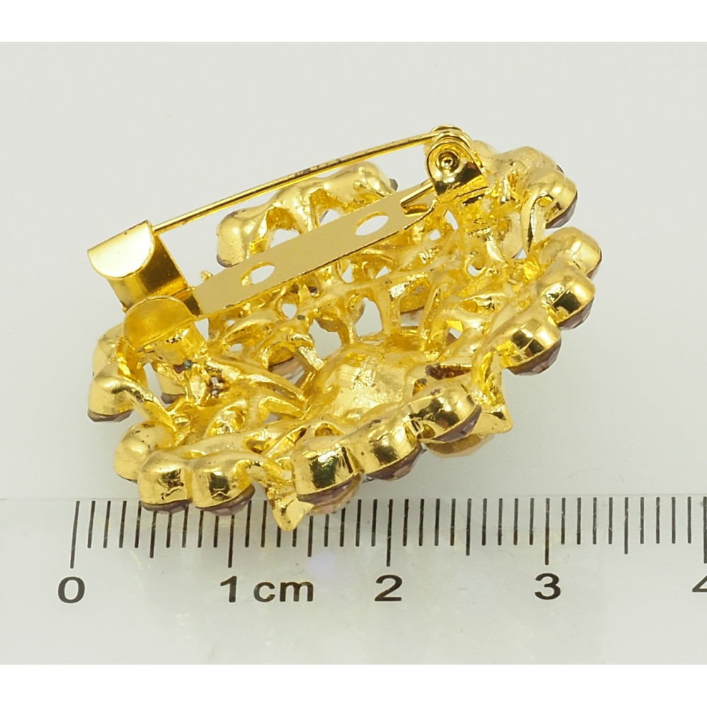 Брошь Цветочек с бордовыми стразами фото №2