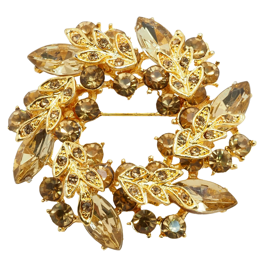Брошь Веночек с коричневыми стразами