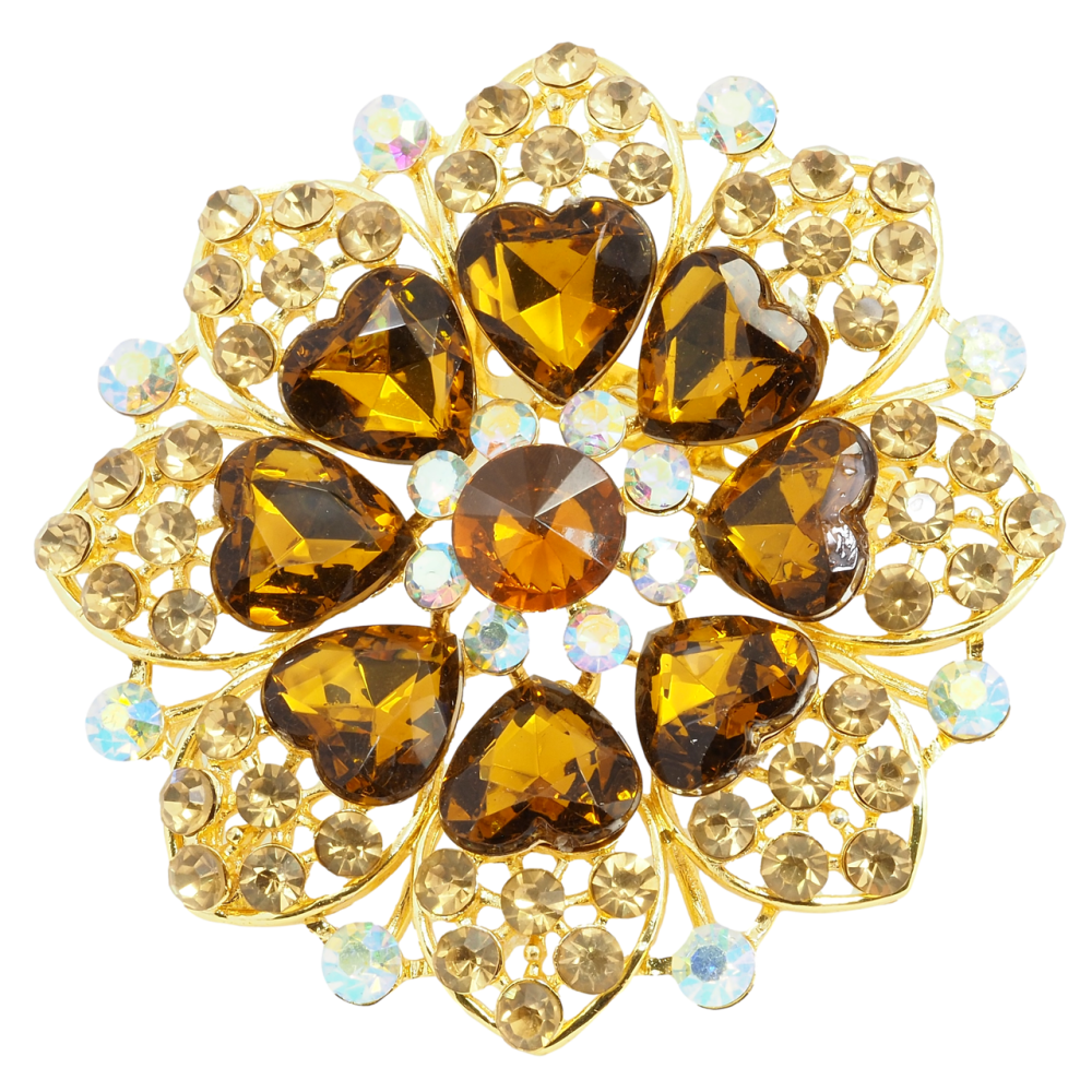 Брошь Цветок с коричневыми стразами