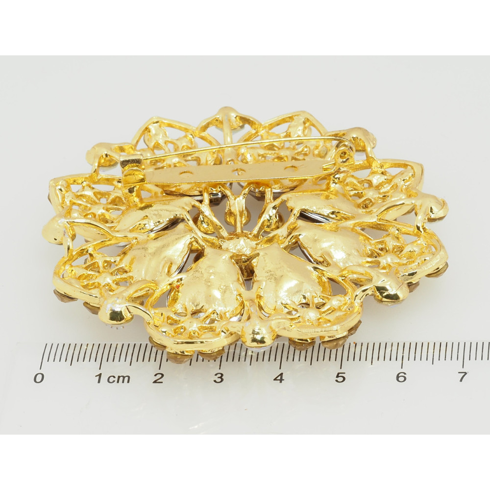 SALE -15% Брошь Цветок с коричневыми стразами фото №1