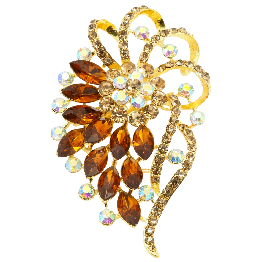 Брошь Цветочная композиция с коричневыми стразами фото №1