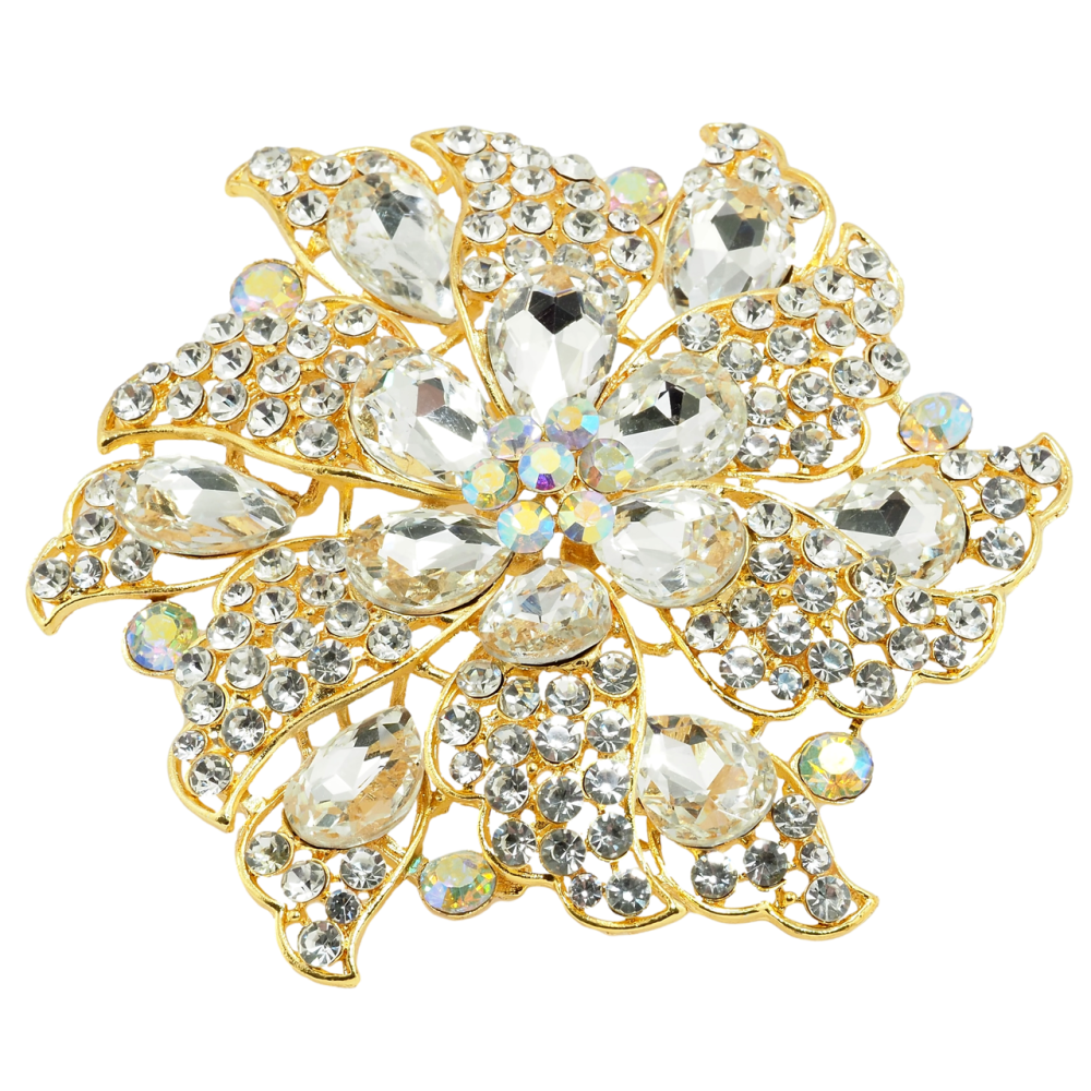 Брошь Большой цветок со стразами