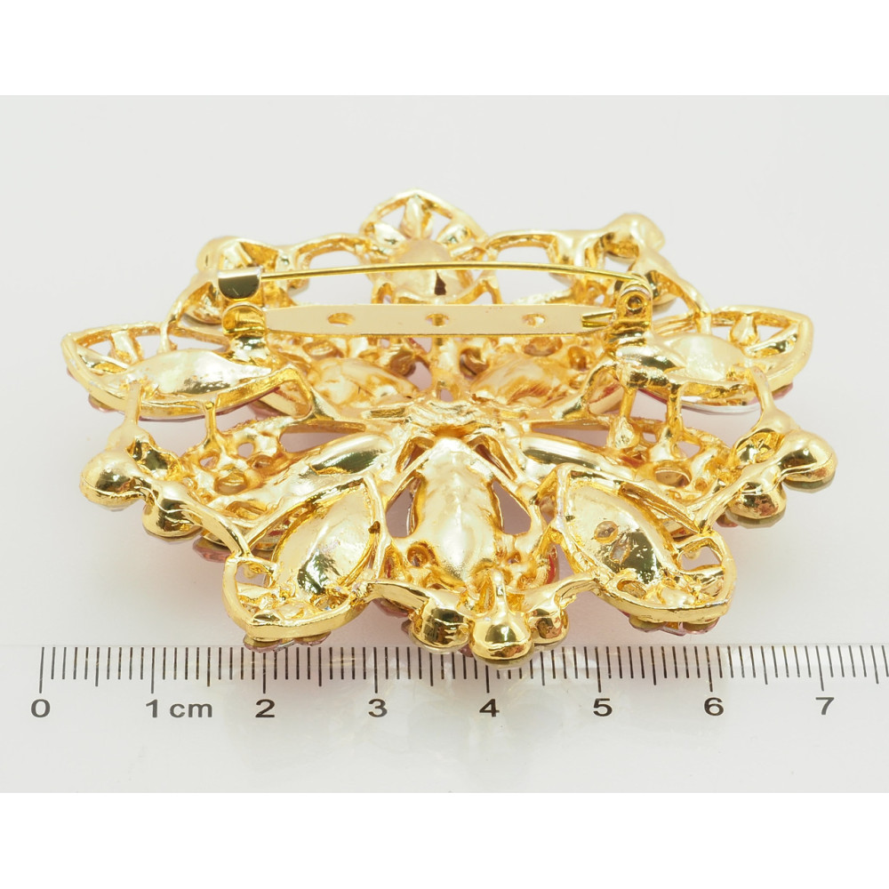 Брошь-кулон Цветок с розовыми стразами