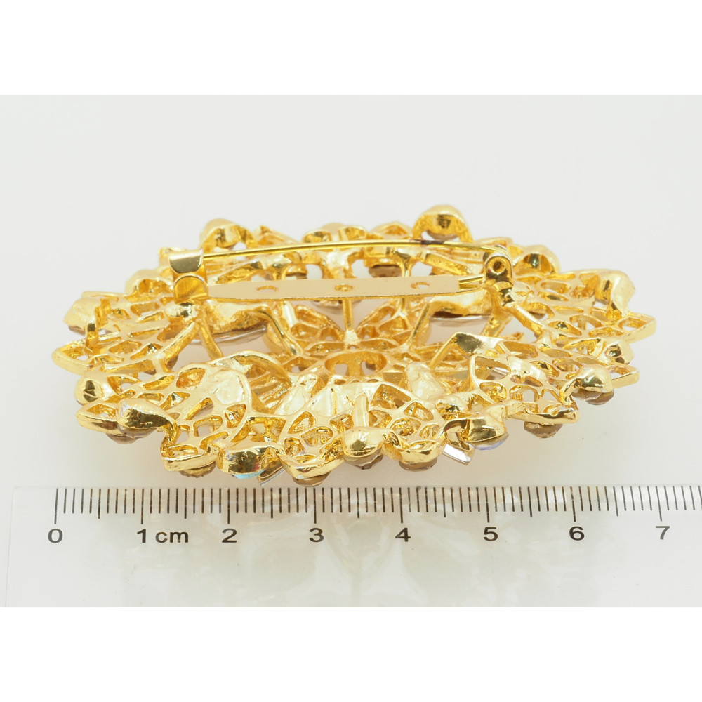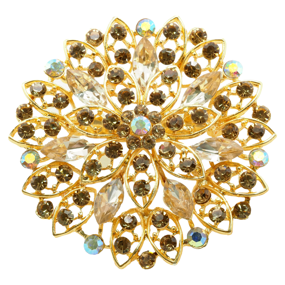 Брошь Цветок с коричневыми стразами