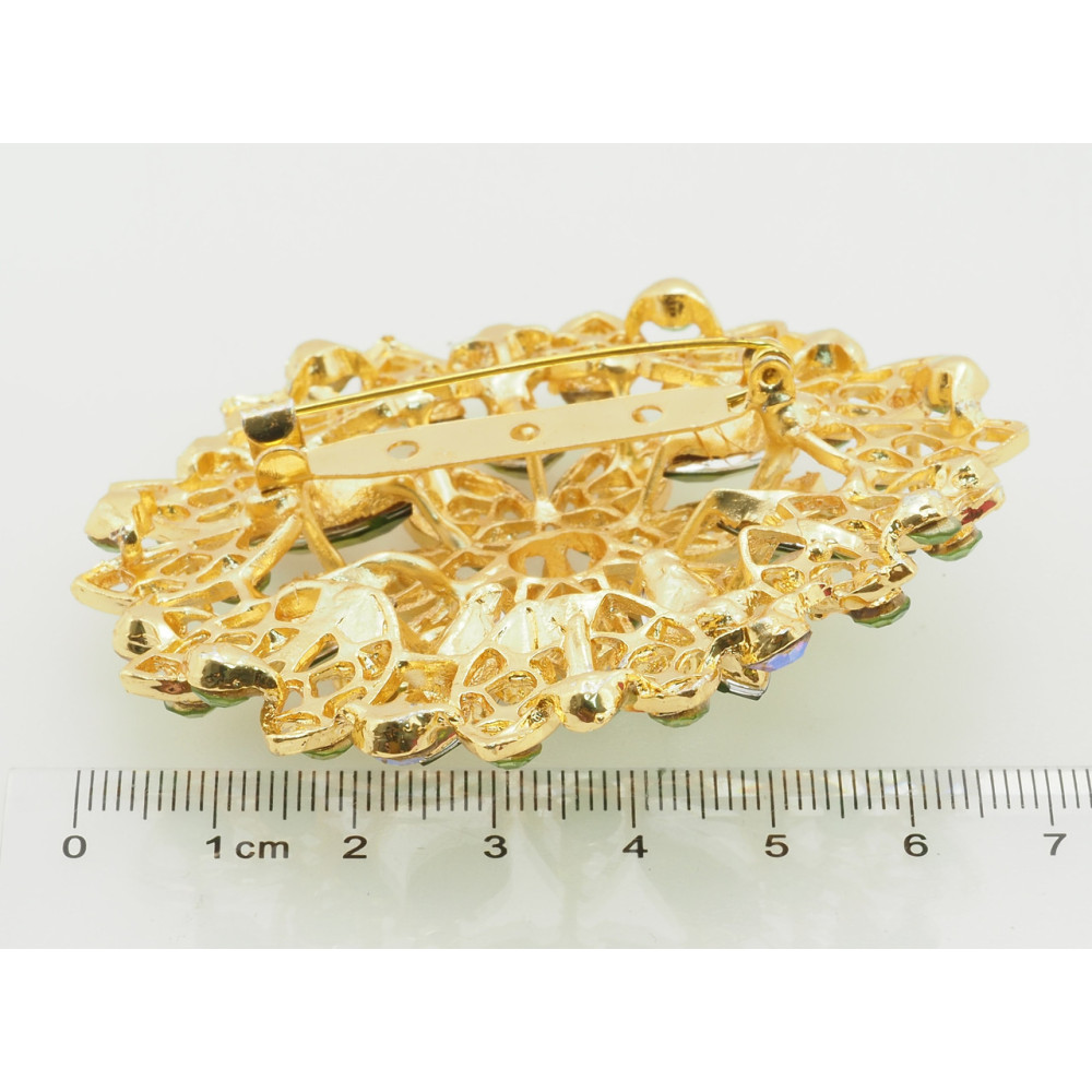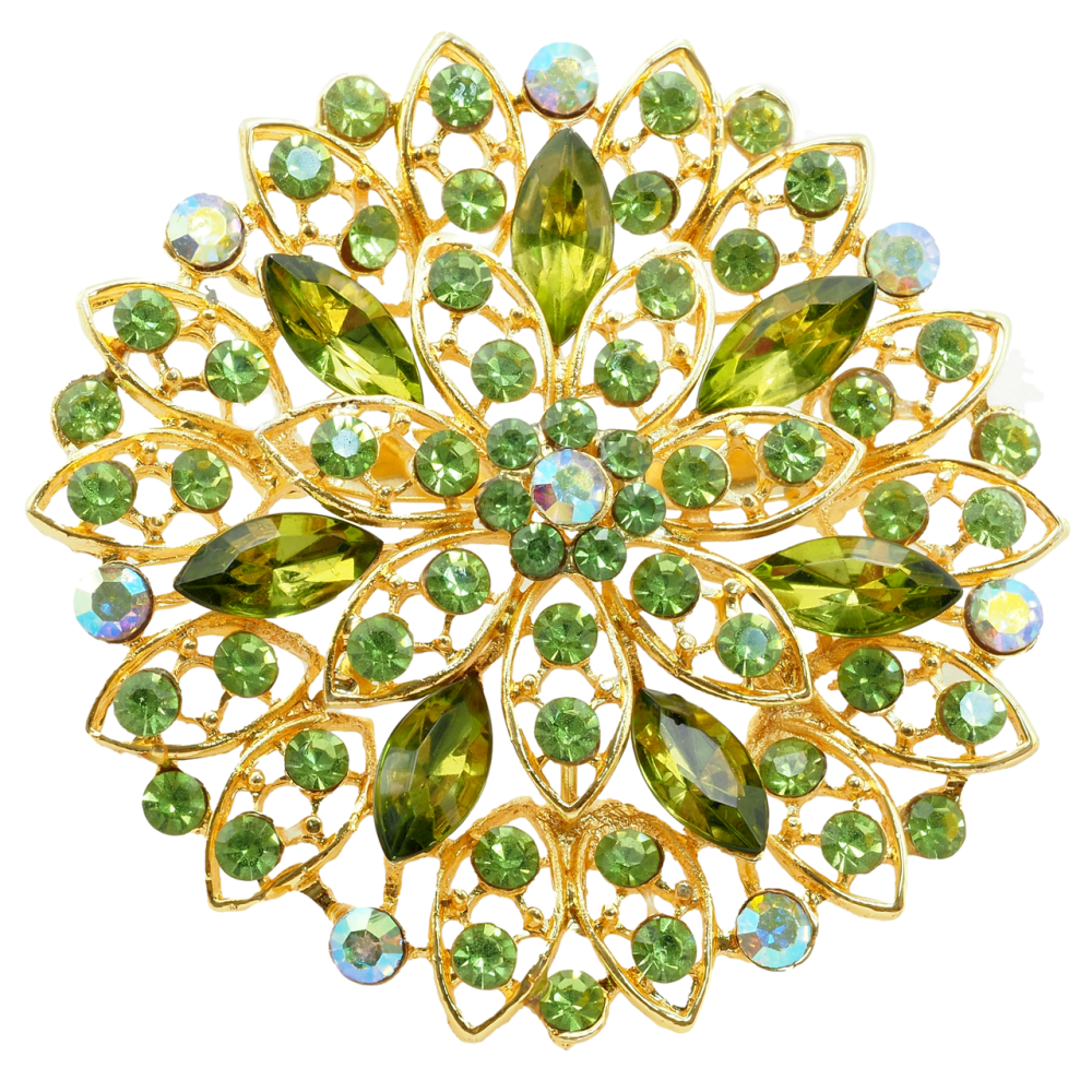 Брошь Цветок с зелеными стразами