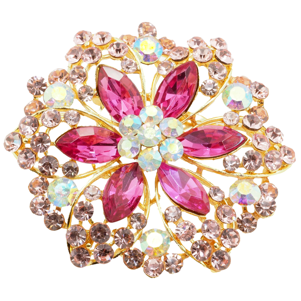 Брошь Цветок с розовыми стразами
