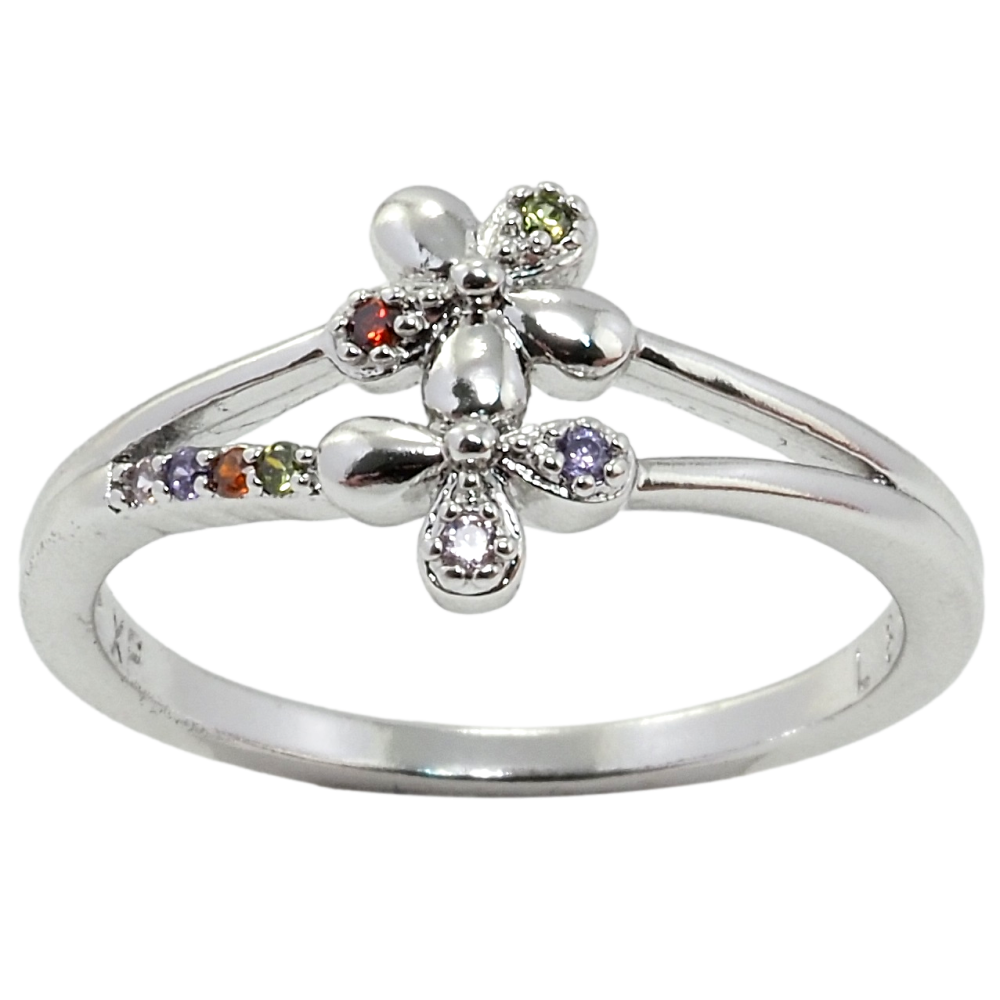 Кольцо Xuping Родий Цветочки с цветным цирконием