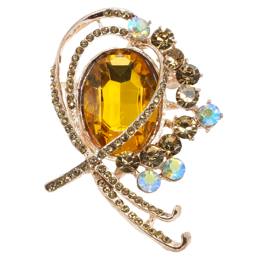 Брошь Орнамент с золотистыми стразами