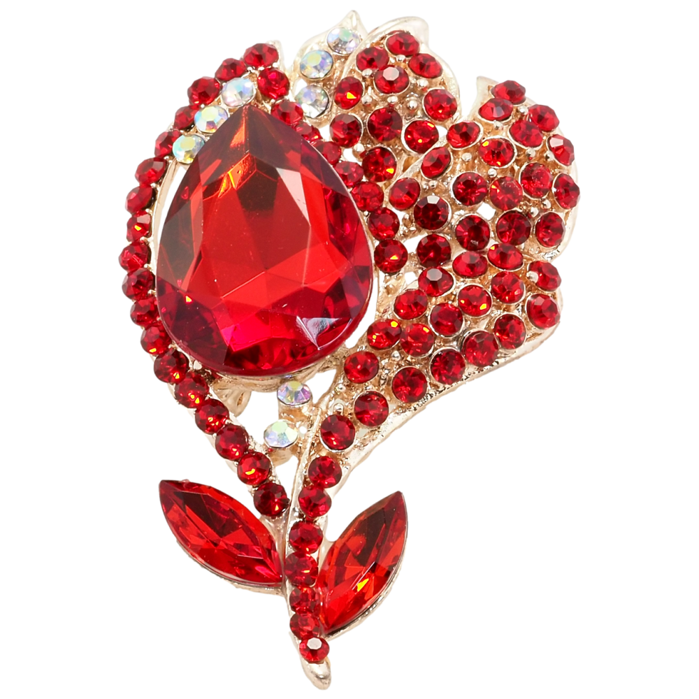 Брошь Цветок с красными стразами
