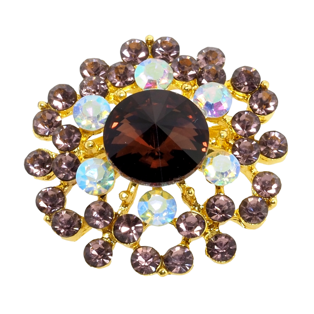 Брошь Цветок с бордовыми стразами