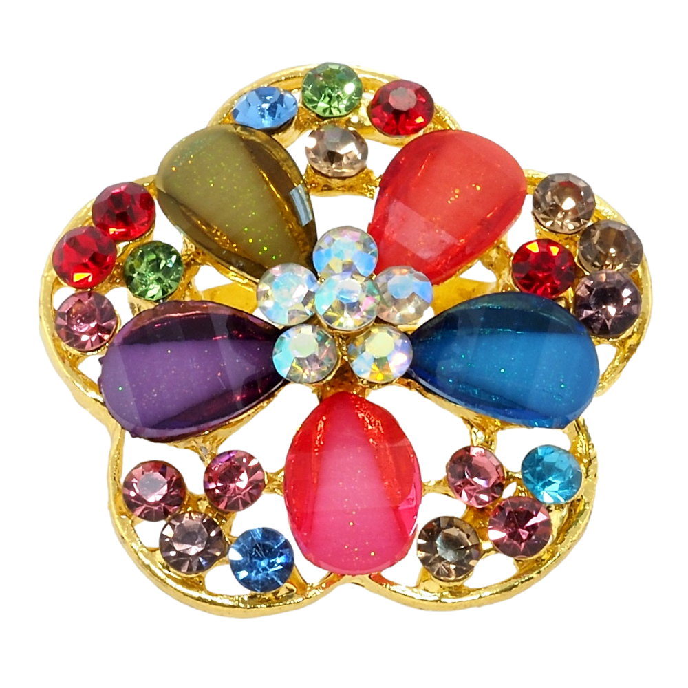 Брошь Цветок с разноцветными стразами