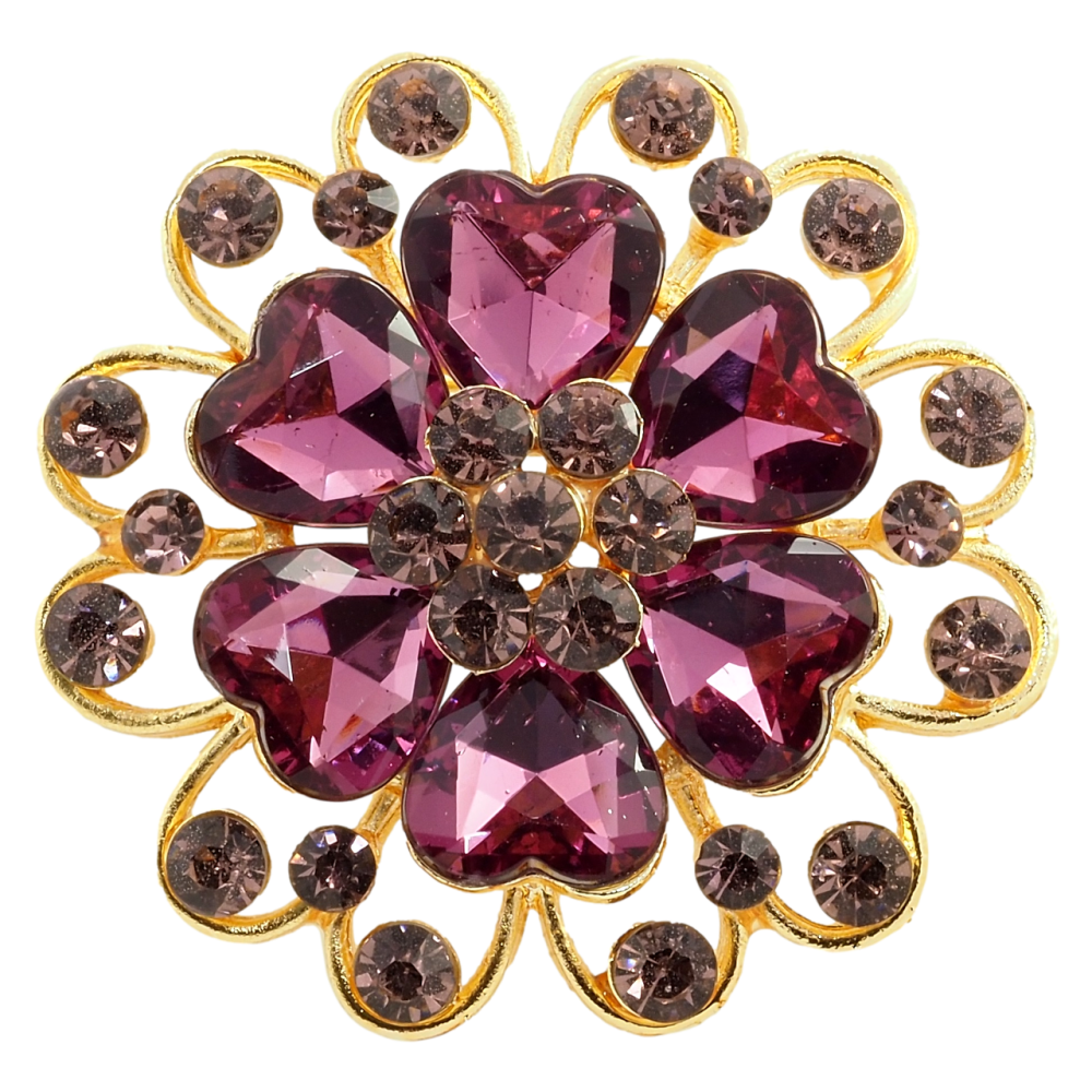 Брошь Цветок с бордовыми стразами