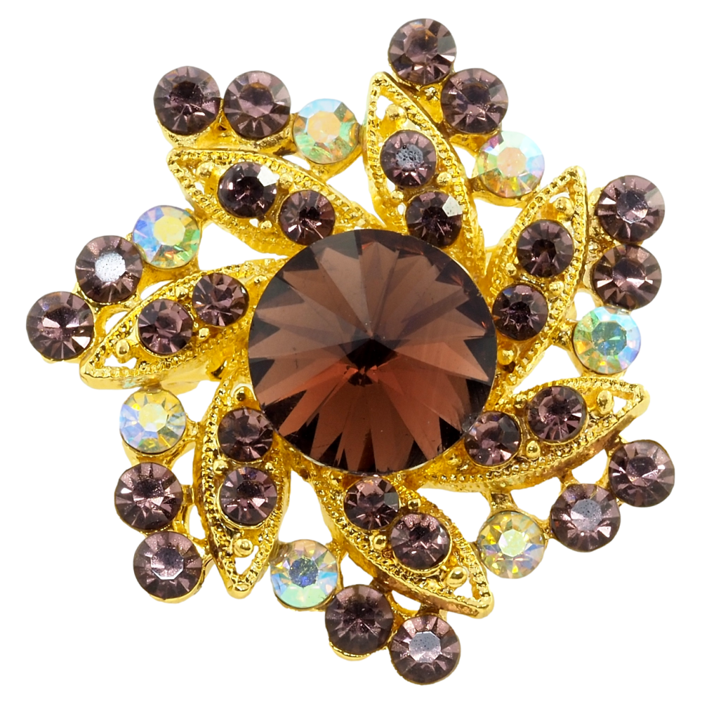 Брошь Цветок с бордовыми стразами