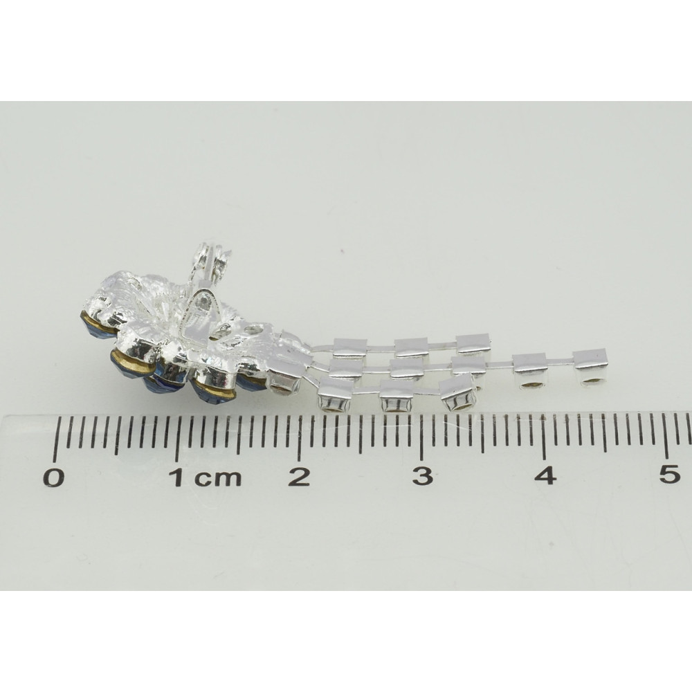 Брошь Цветок с синими стразами
