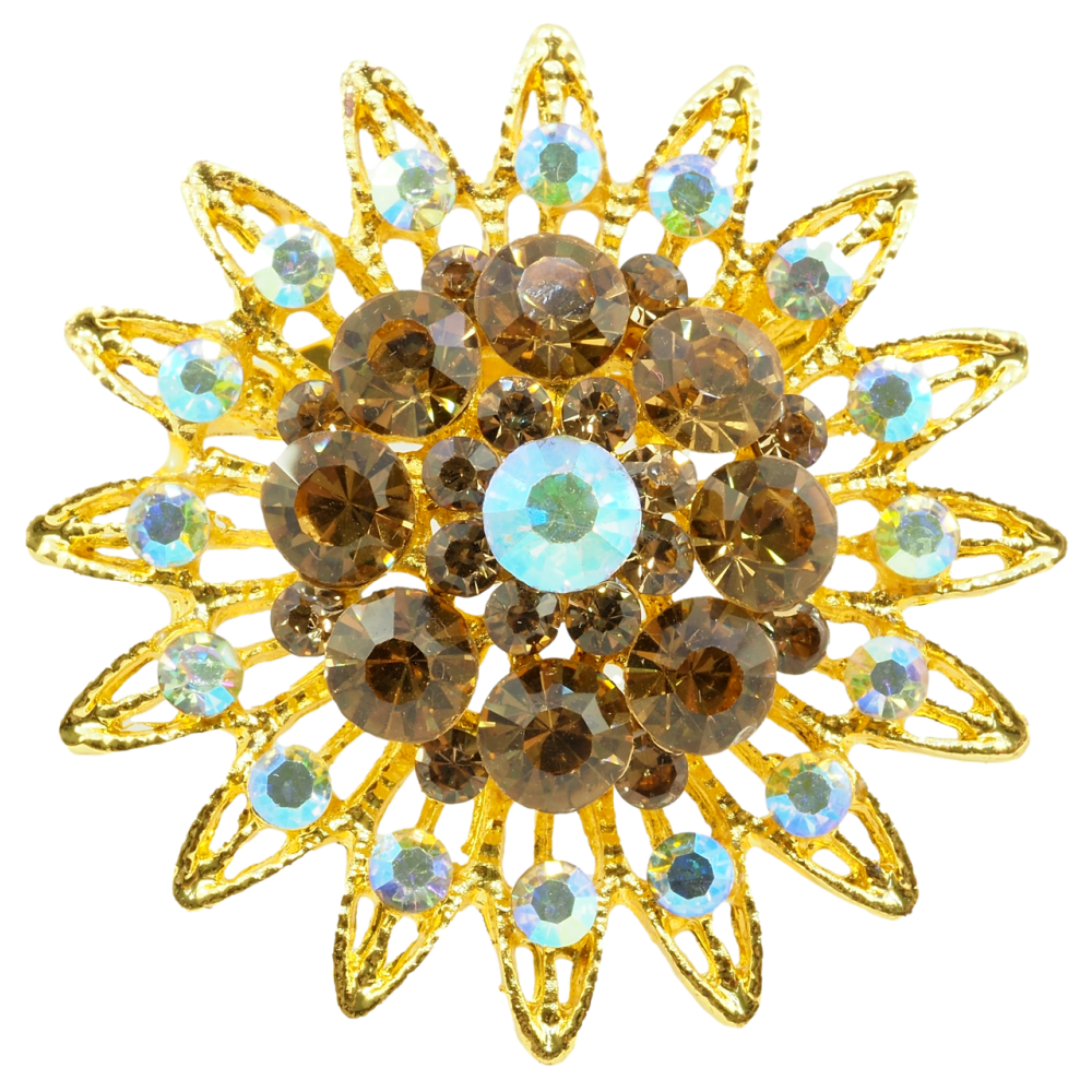 SALE -16% Брошь Цветок с коричневыми стразами фото №1
