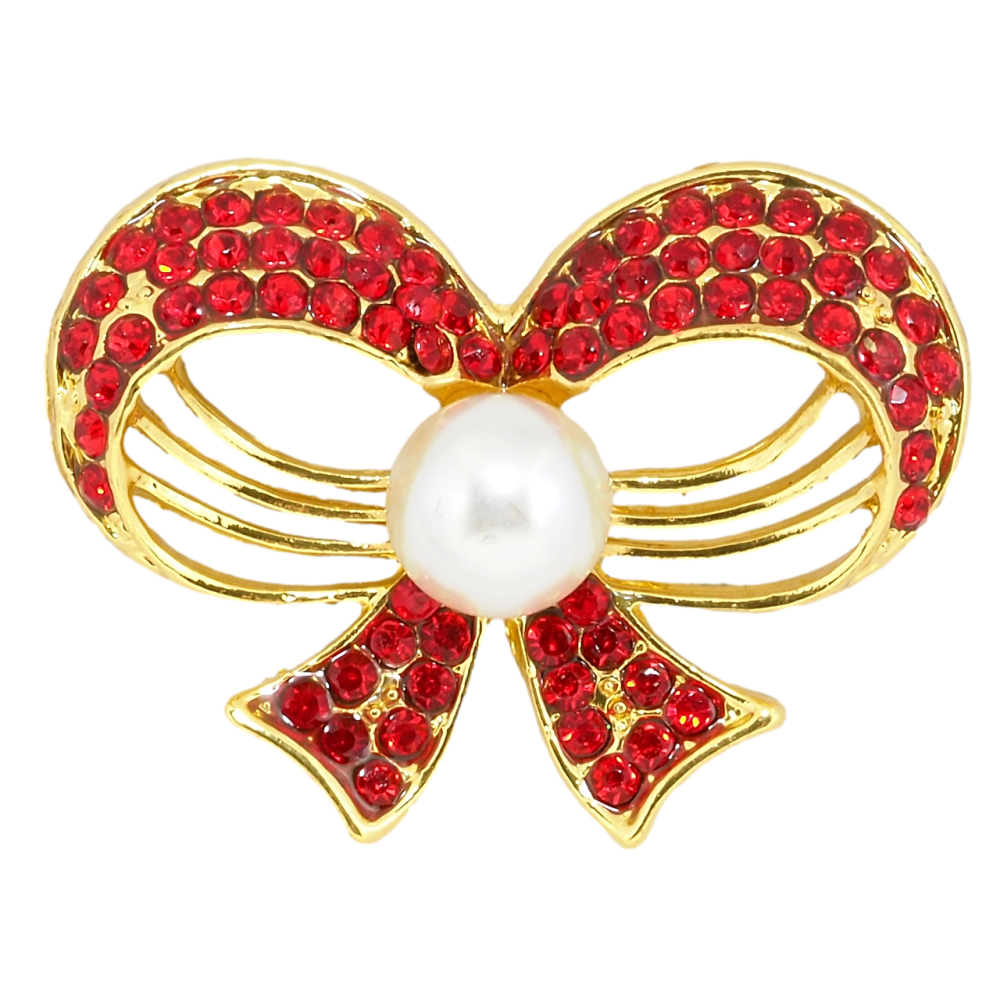 Брошь Бант с красными стразами