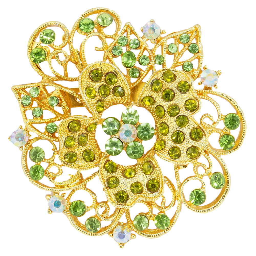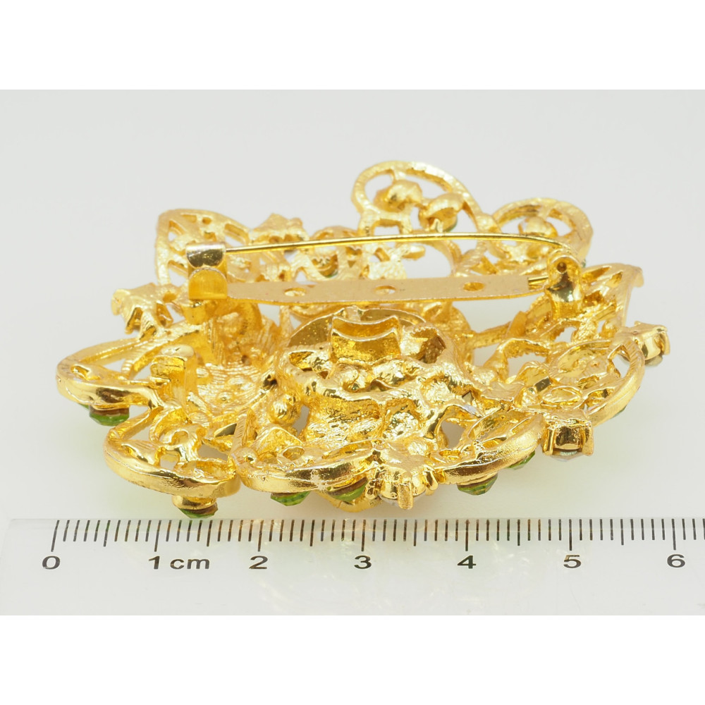 Брошь Цветок с зелеными стразами