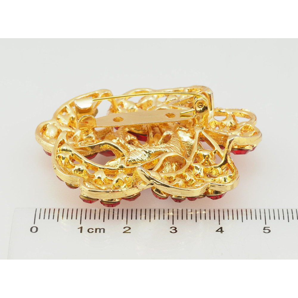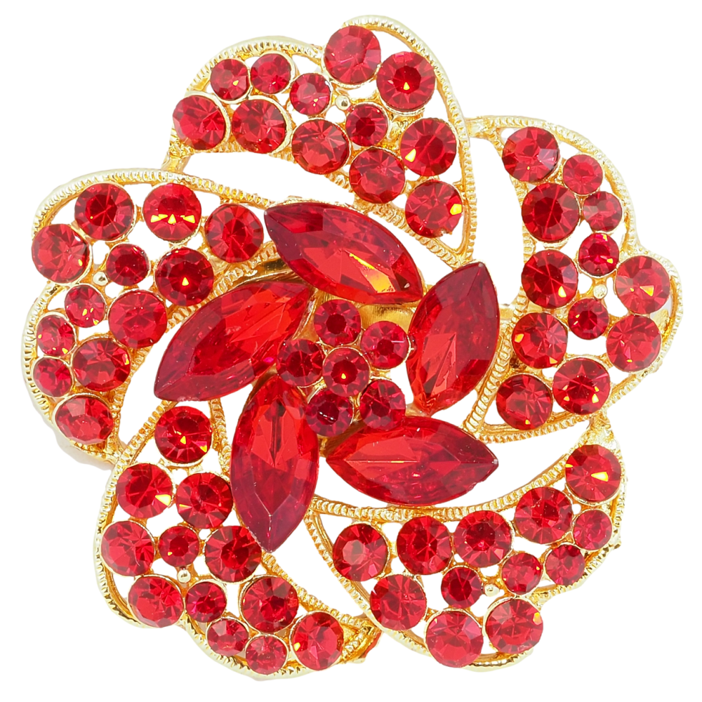 Брошь Цветок с красными стразами