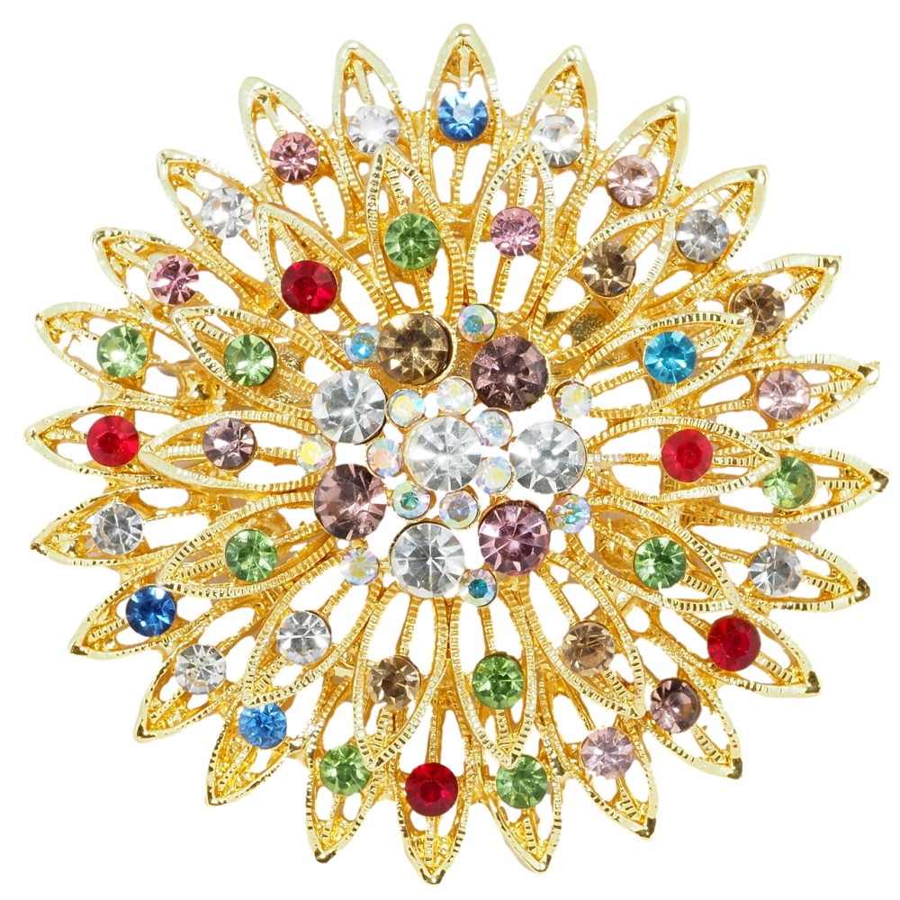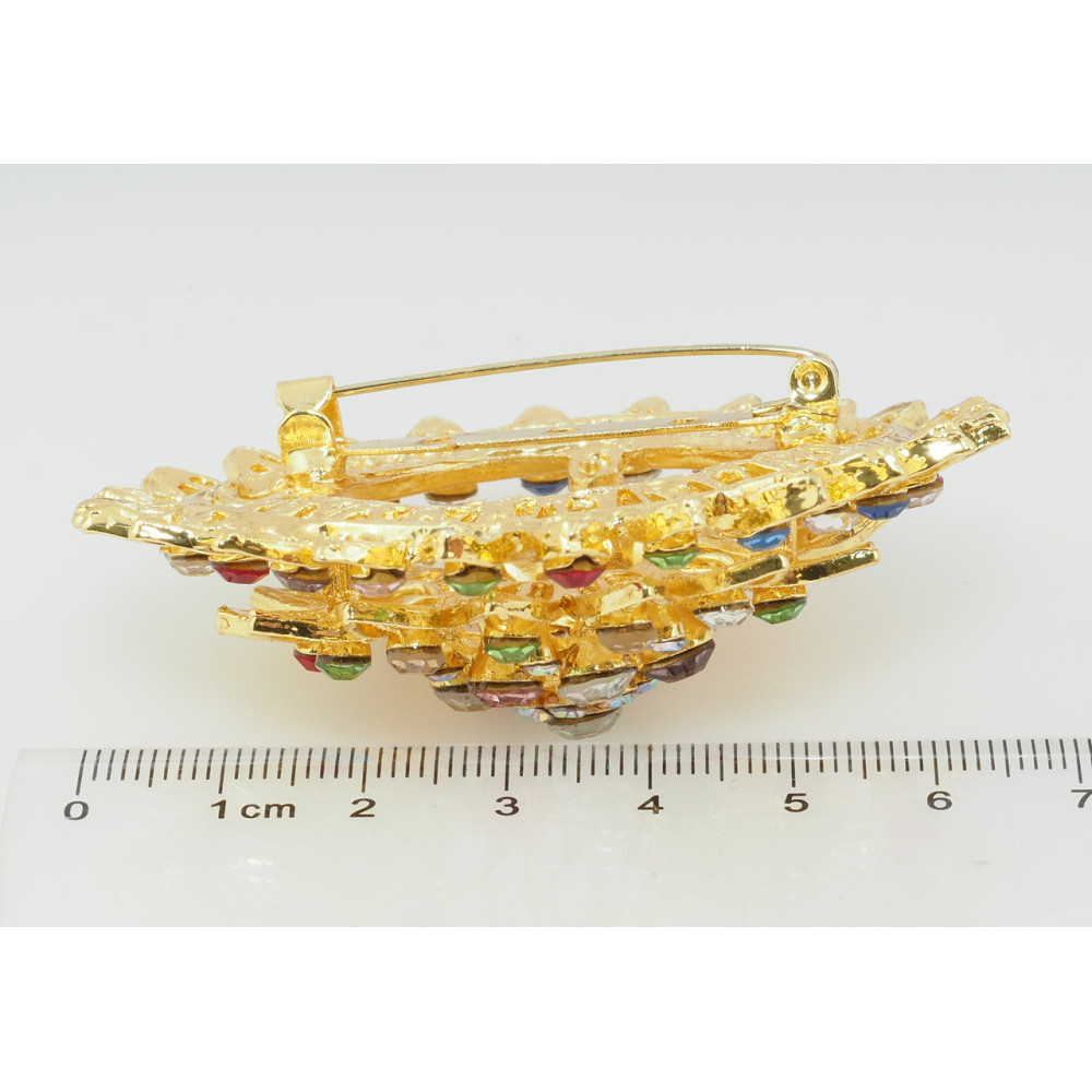 Брошь Цветок с разноцветными стразами