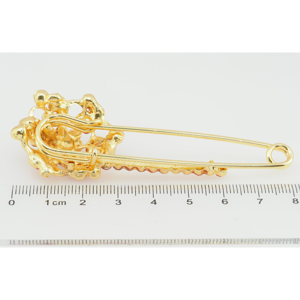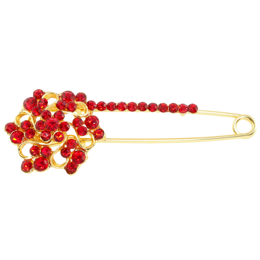 Брошь-булавка Цветок с красными стразами
