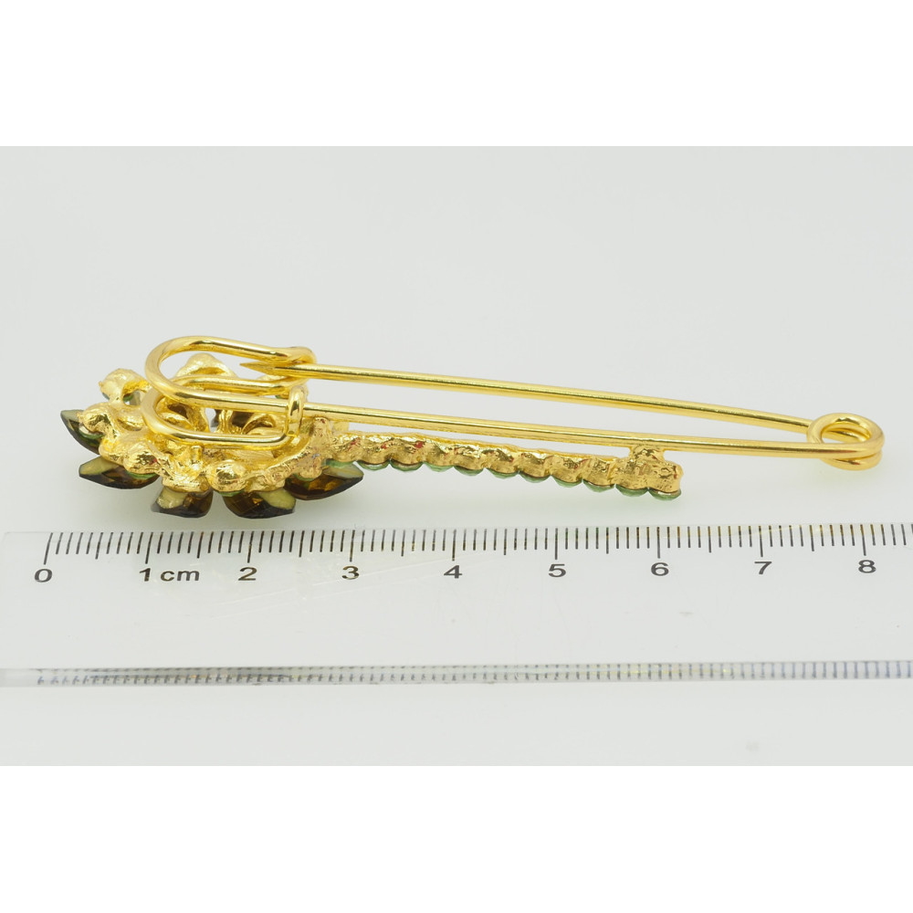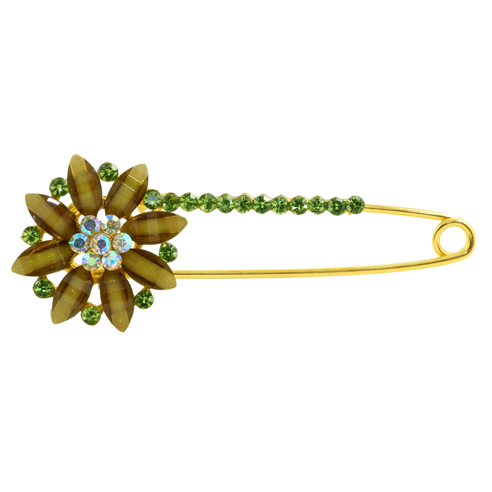 Брошь-булавка Цветок с зелеными стразами