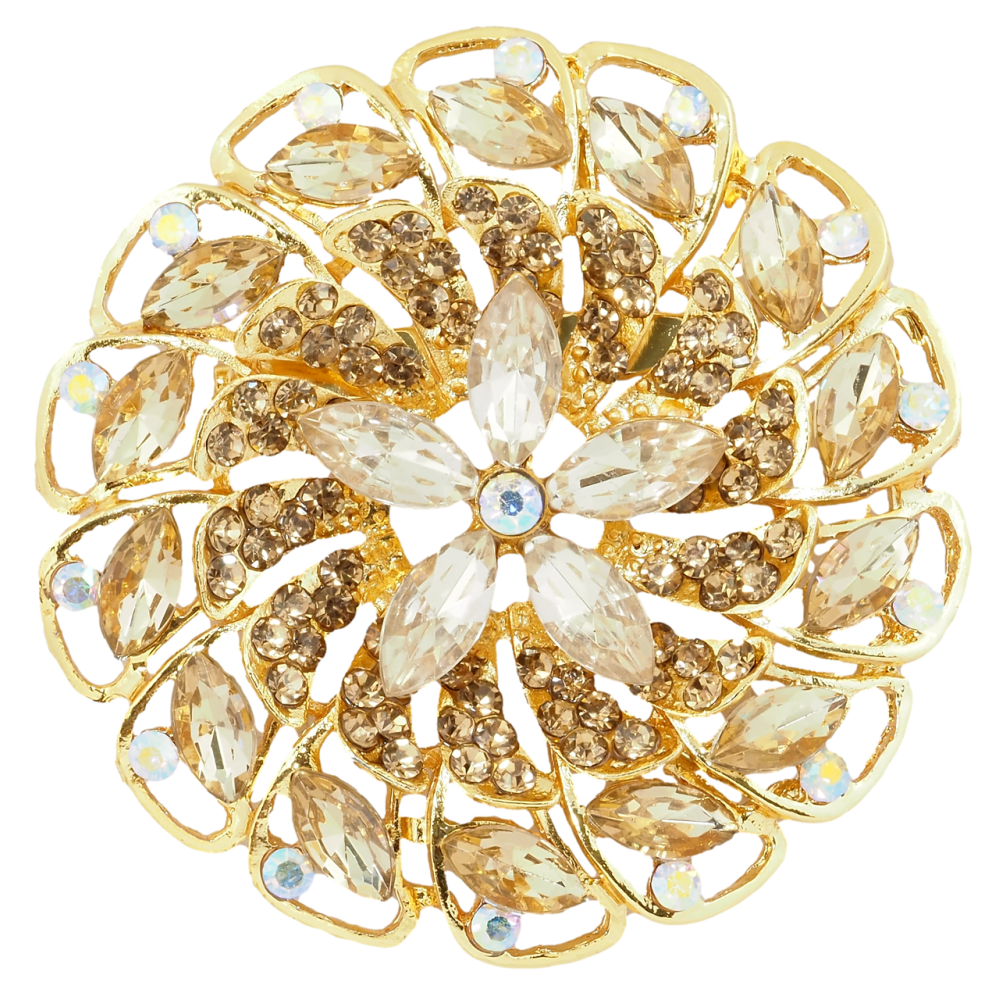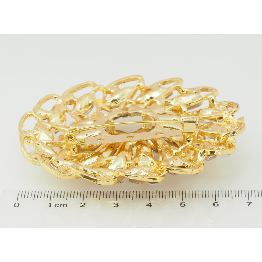 Брошь Цветок с золотистыми стразами