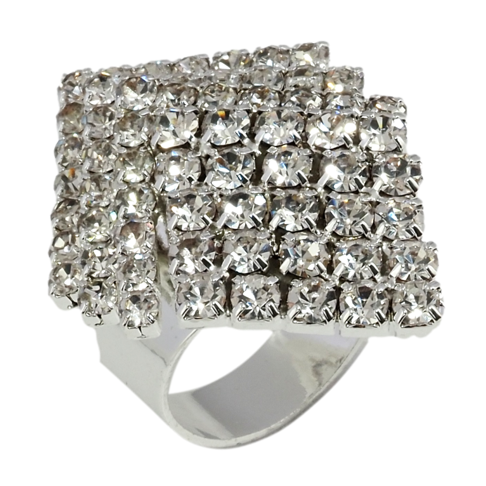 Кольцо Ромб со стразами свободный размер