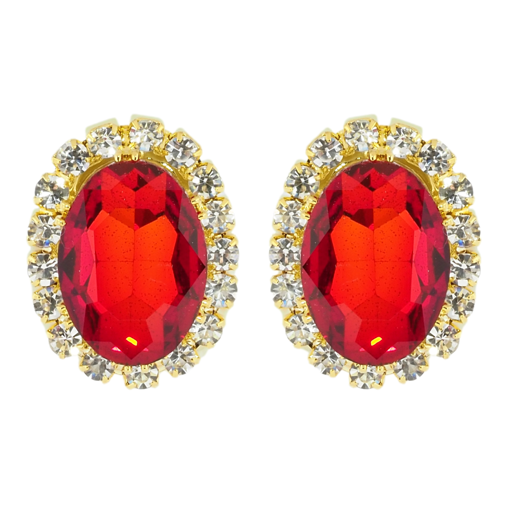 Серьги пусеты Красные кристаллы в обрамлении страз