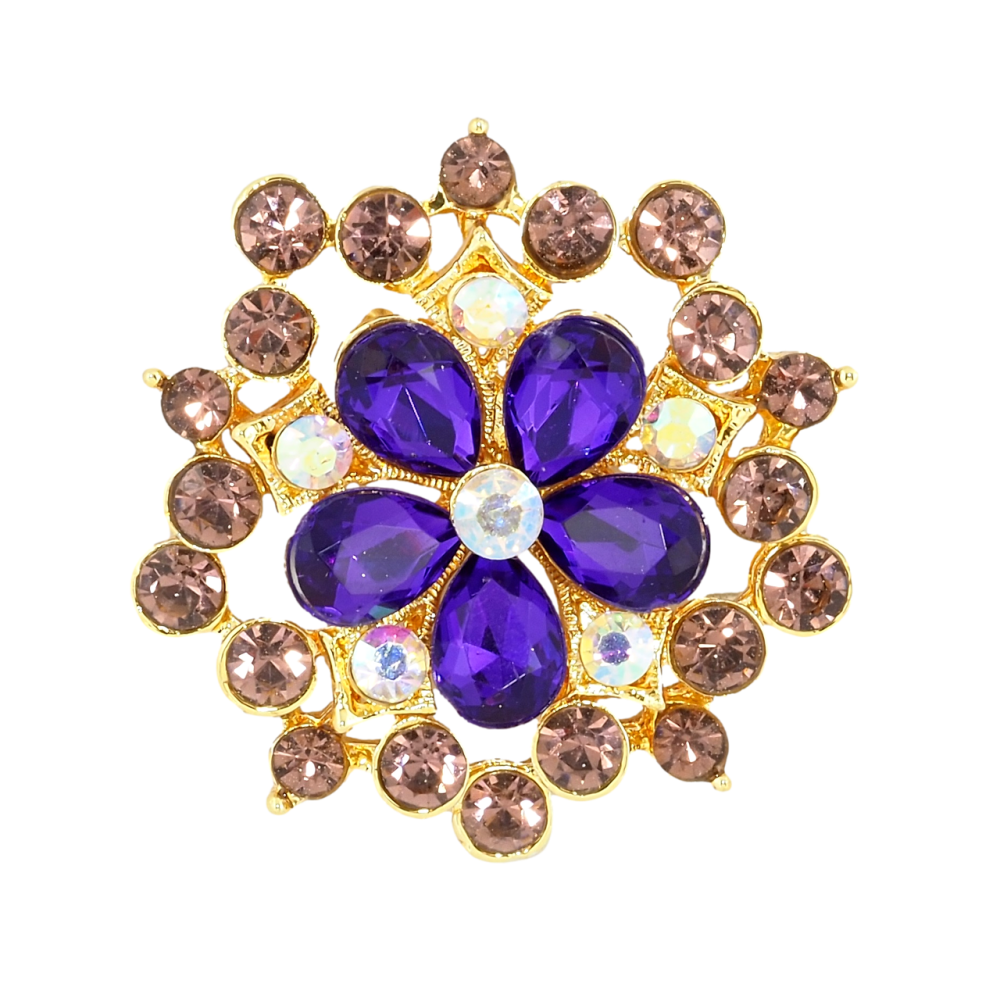 Брошь Цветок с фиолетово-бордовыми стразами