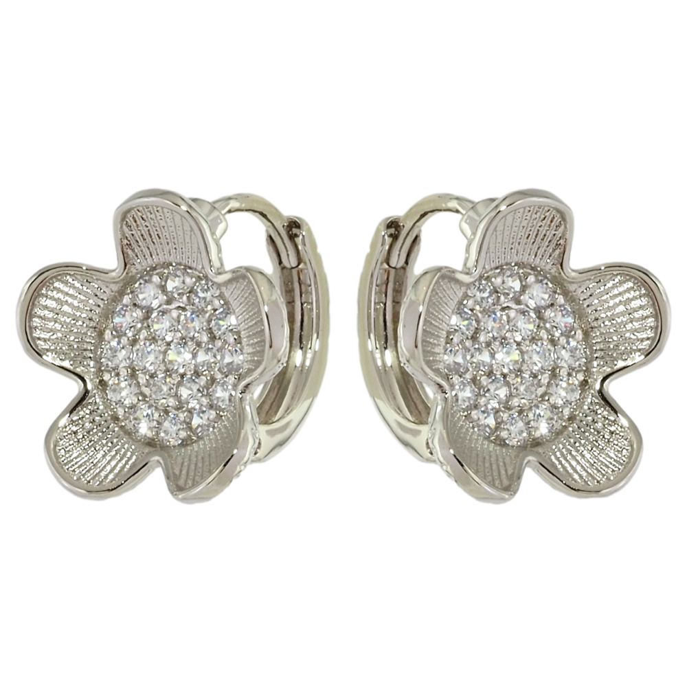 Серьги Xuping Родий колечки Цветочки с цирконием