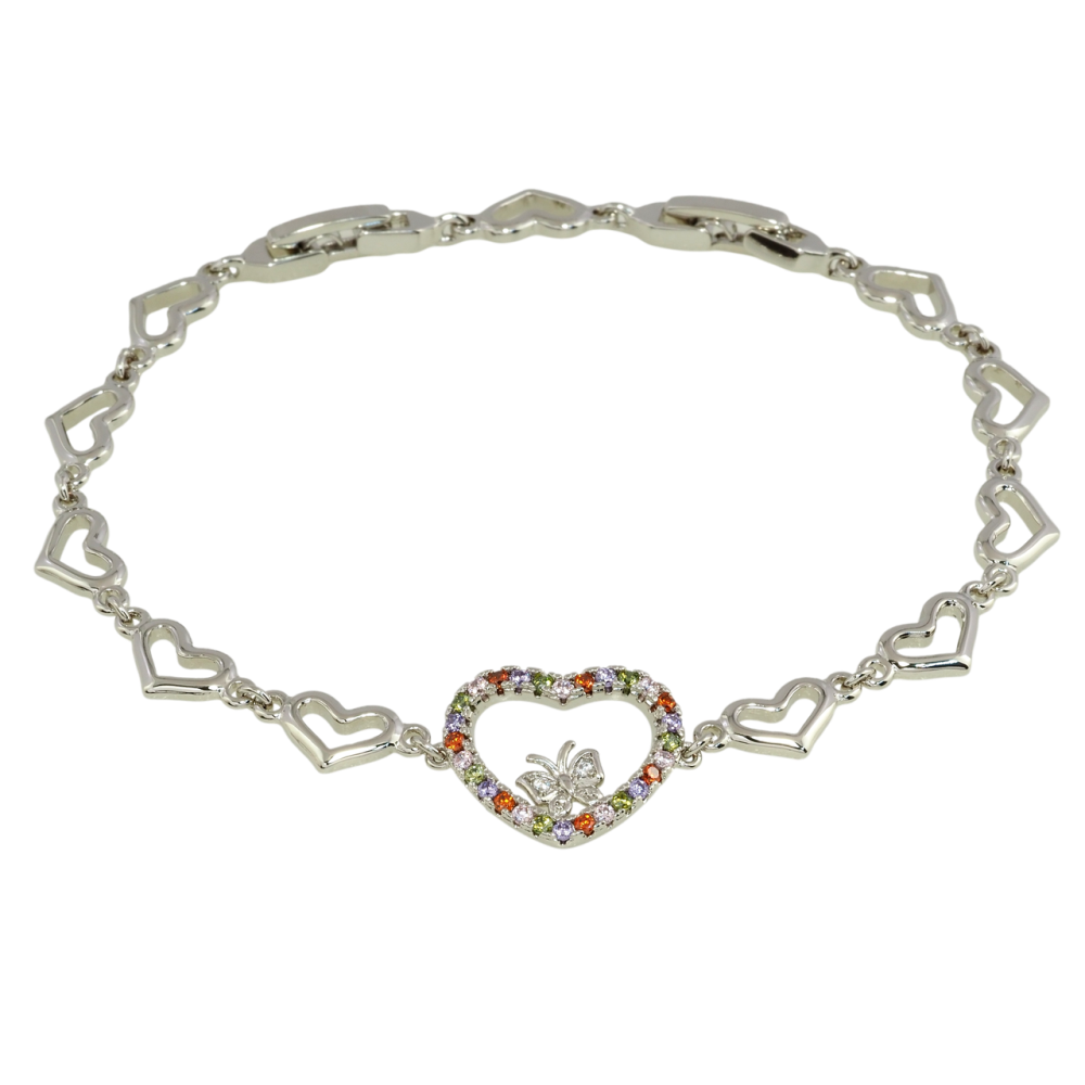 Браслет Xuping Родий Сердечки с цветным цирконием размер с доп. замком 18,21см х 7мм