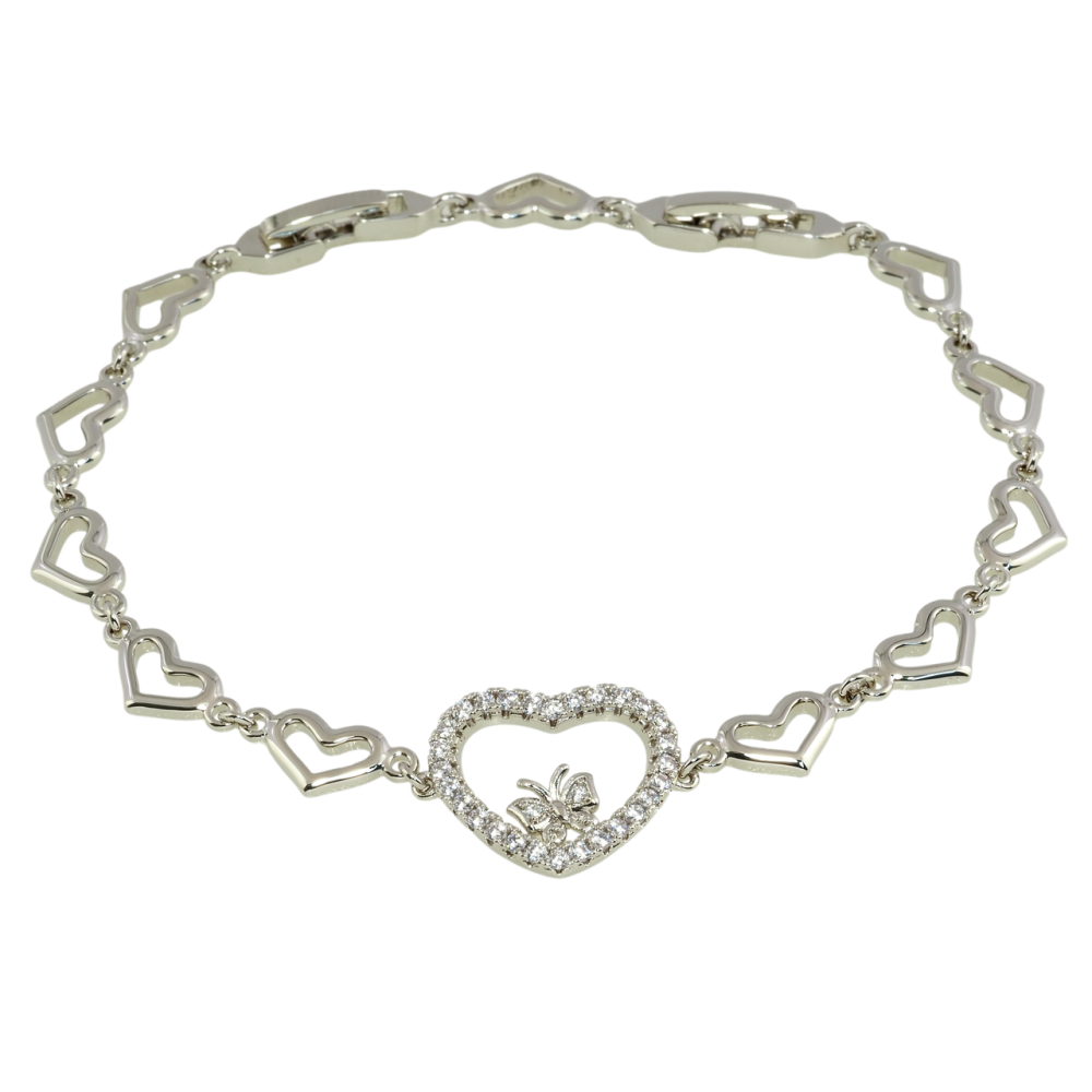 Браслет Xuping Родий Сердечки с цирконием размер с доп. замком 18,21см х 7мм