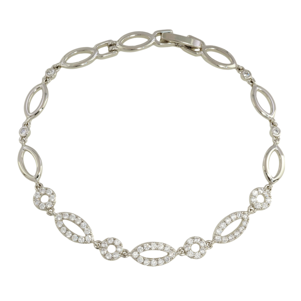Браслет Xuping Родий Овальные звенья с цирконием размер 18.5см х 5-6мм