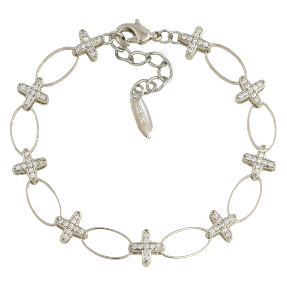 Браслет Xuping Родий Овальные звенья с крестиками размер с доп. цепочкой 18-21см х 7-8мм