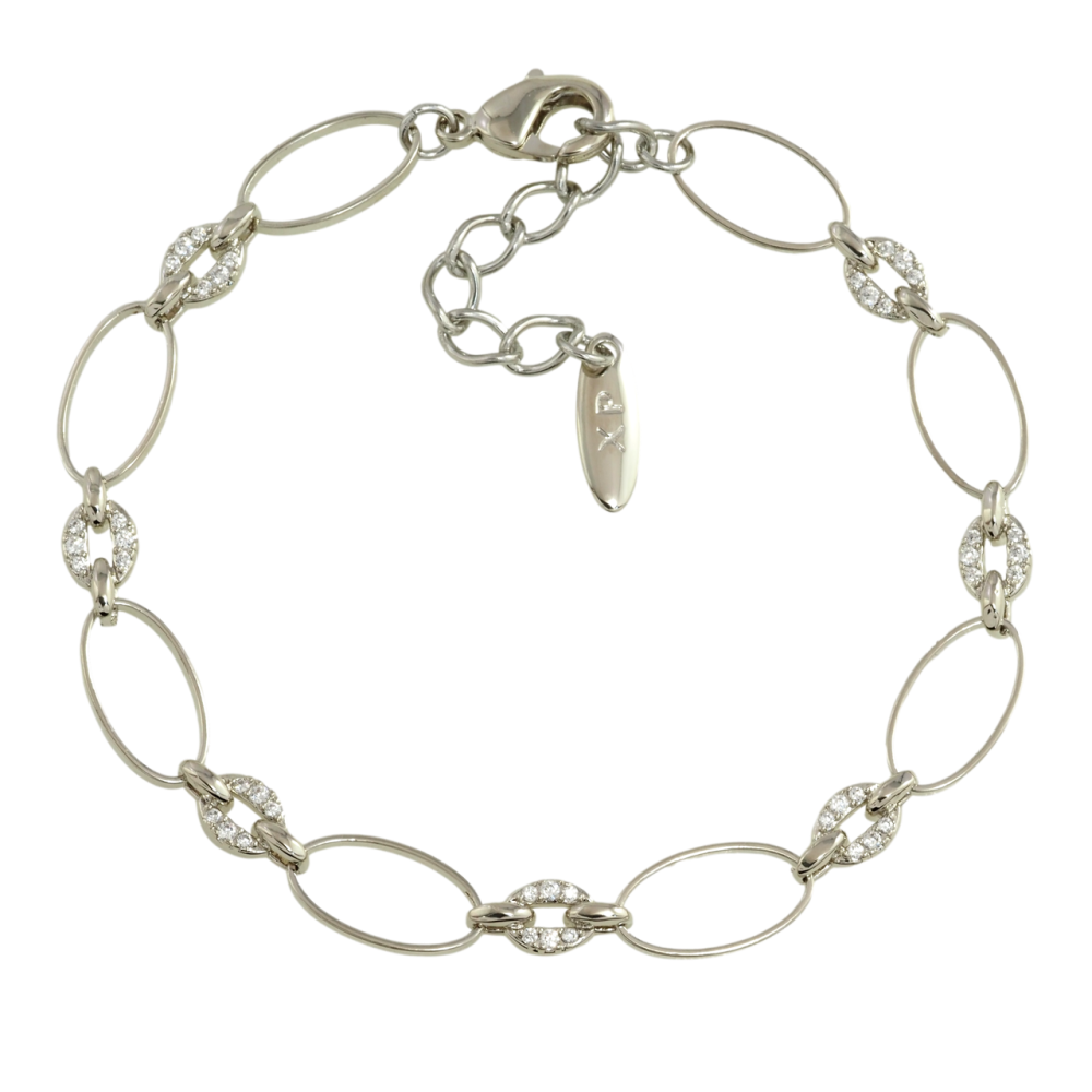 Браслет Xuping Родий Овальные звенья с цирконием размер с доп. цепочкой 17.5-21см х 5-7мм