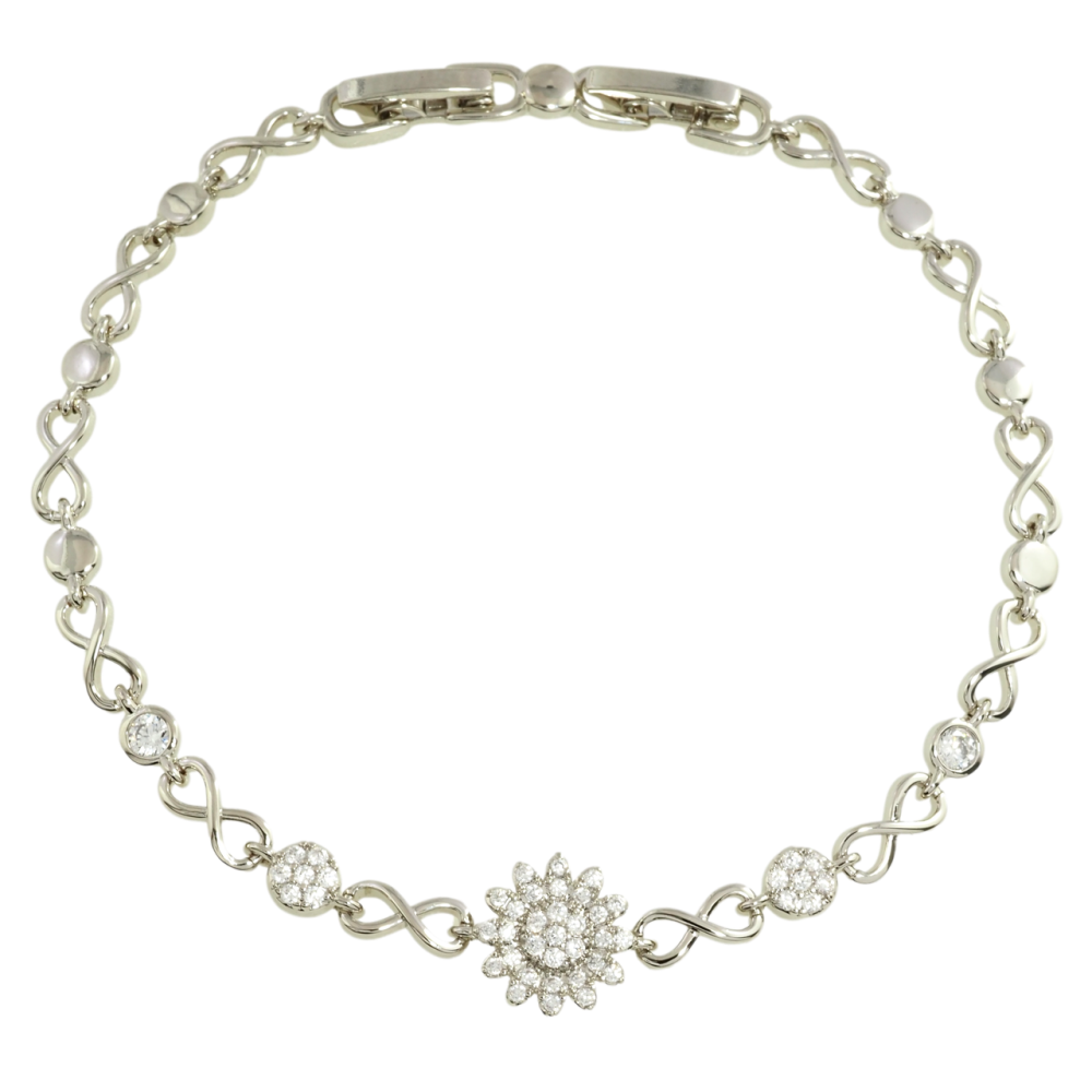 Браслет Xuping Родий Вставка цветочек с цирконием размер с доп. замком 17.5,19.5см х 4мм