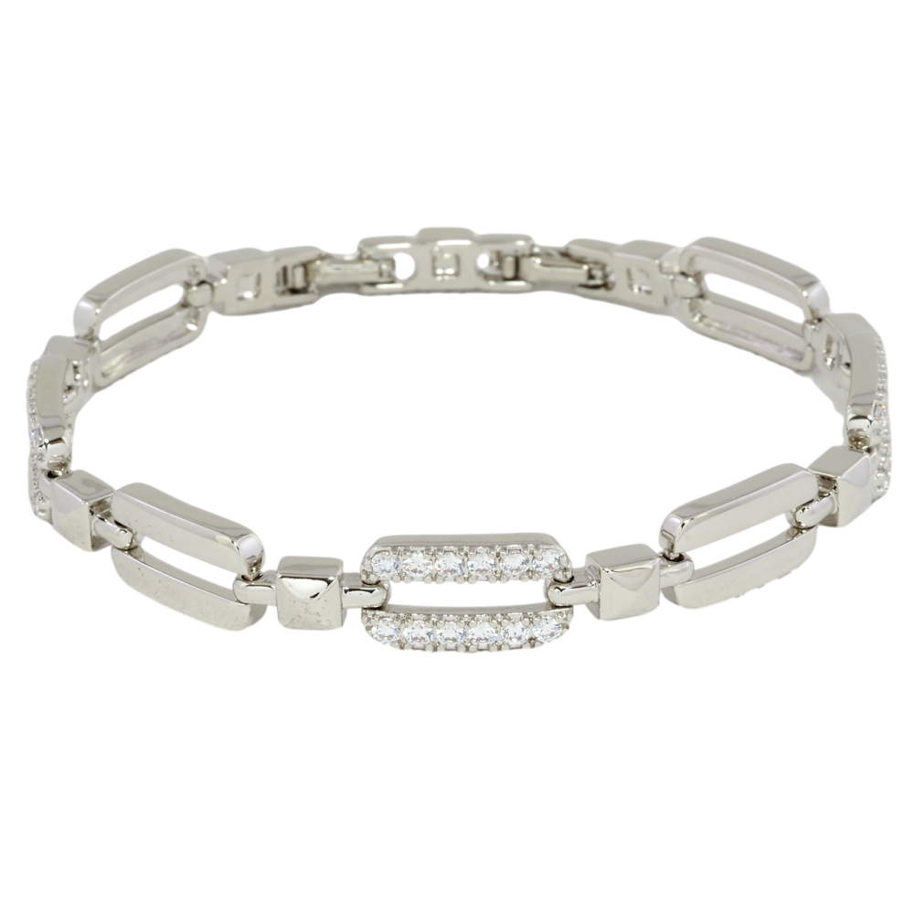 Браслет Xuping Родий Звенья с цирконием размер с доп. замком 17,19см х 4-8мм