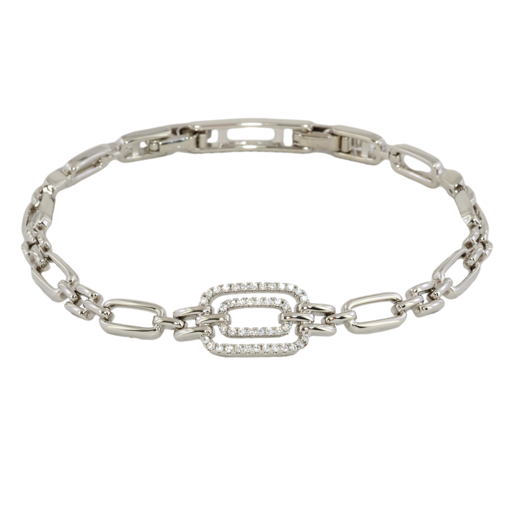 Браслет Xuping Родий Звенья с цирконием размер с доп. замком 16.5,18.5см х 4-5мм