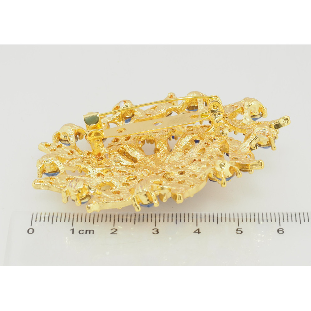 Брошь Цветок с синими стразами
